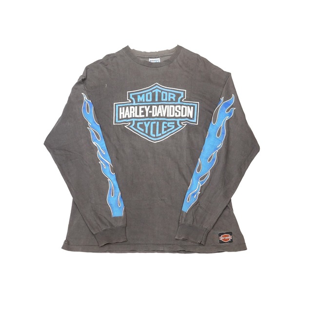 90's Vintage Harley Shirts Bar&Shield Blue Flame L/S 【L】