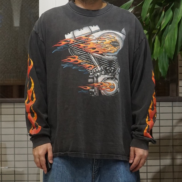 00's Vintage Harley Shirt Engine Flame L/S【XL】