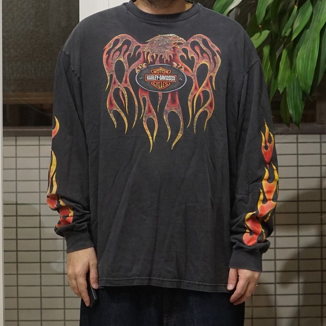 00's Vintage Harley Shirt Eagle Flame L/S【XL】
