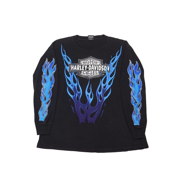 90's Vintage Harley Shirt Blue Flame L/S【XL】
