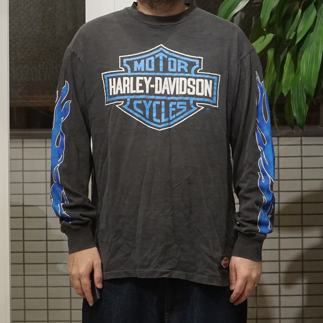 90's Vintage Harley Shirt Blue Flame L/S【XL】 Size :XL 肩幅60cm 身幅60cm 袖丈58cm 着丈69cm 着用モデル : 169cm 75kg 【商品説明】 Harley Davidson フロント© バック© 生産国 : アメリカ 袖 : 丈 : ダブル かなり良い雰囲気のヤレ感個体◎ 背面プリント部分に一か所ピンホール それ以外はホント良い雰囲気◎ 是非に~ ※ご注意点 全てビンテージアイテムになります。 ご理解いただいた上でのご購入をお願いいたします。 ダメージ箇所や状態の画像は載せておりますが、画像だけでは伝わり難い細かなダメージ等がある場合もございます。 気になる方は購入前にお問合せくださいませ。 実店舗でも販売しております。できる限り即時反映するようにしておりますが、売り違いにより在庫を用意できない場合がございます。 その際はキャンセルになりますのでご容赦くださいませ。 サイズ取りは、実際のアイテムから実寸で表記いたしております。 PCの設定、ブラウザ等の環境の違いによりまして、モニターで表示されるカラーと実物のカラーに差異が生じる場合がございます。 上記注意点をご理解頂いただき、ご了承された上でご購入をご検討下さいませ。luna10