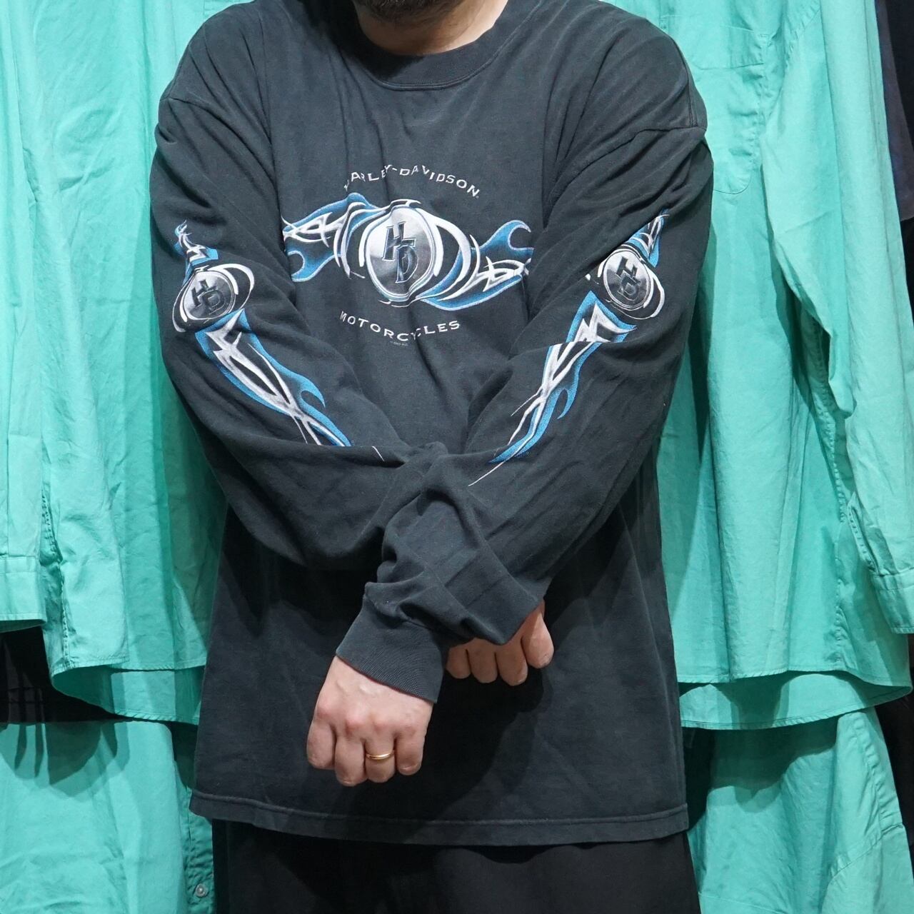 00's Vintage Harley Shirts Blue Flame L/S 【XL】