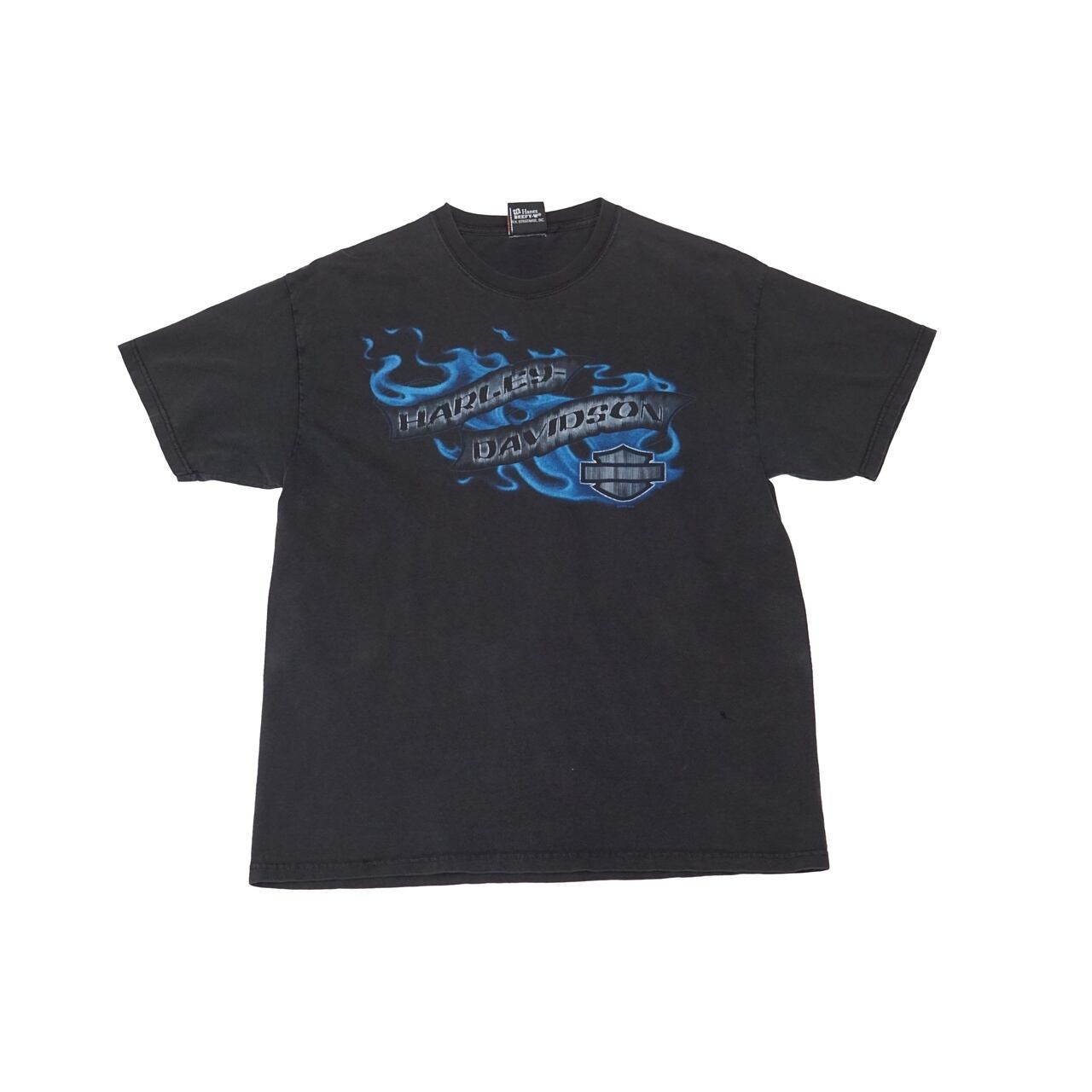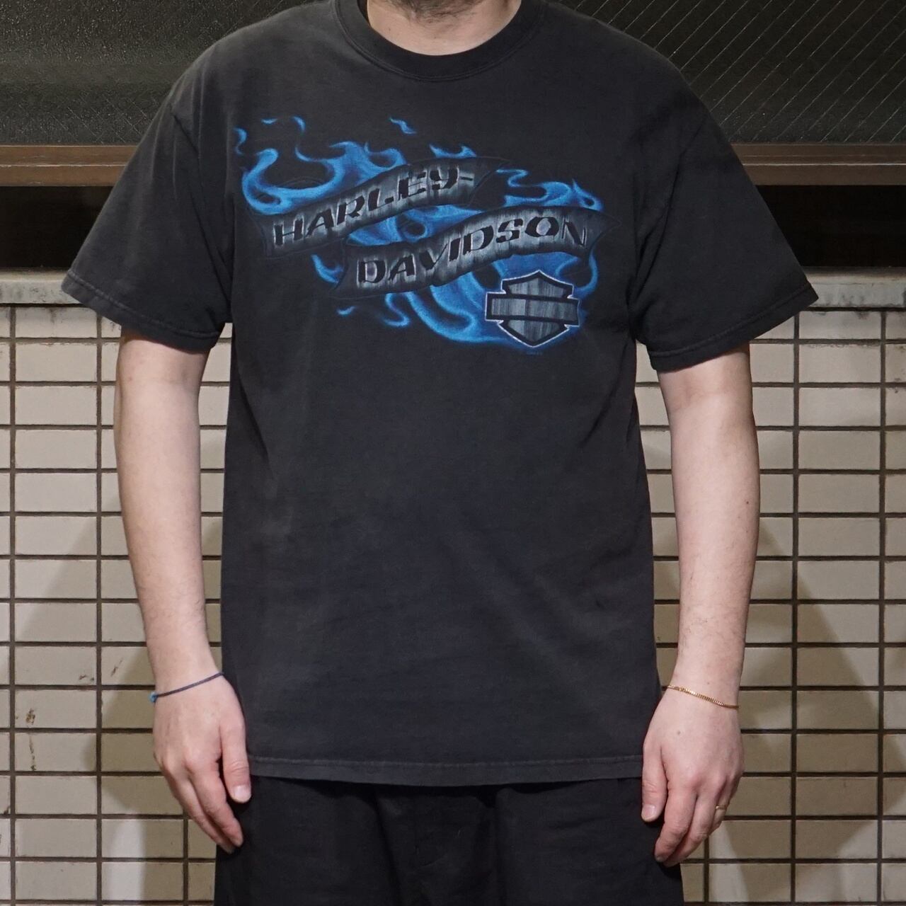 00's Vintage Harely Shirt Blue Flame S/S【L】