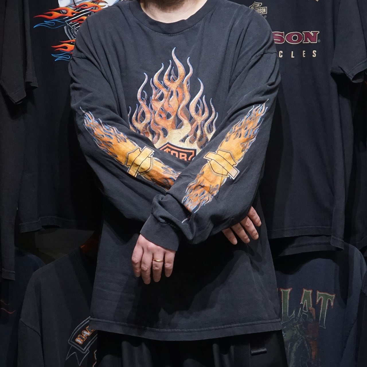 00's Vintage Harely Shirt Fire Flame L/S【XXL】