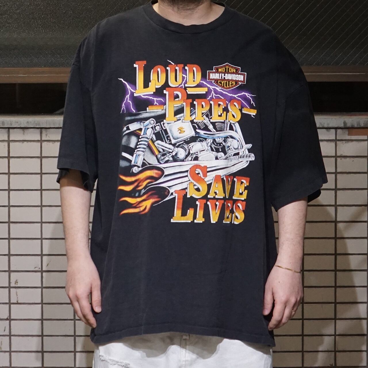 90's Vintage Harley Shirts Loud Pipes-Save Lives S/S 【XXXL】