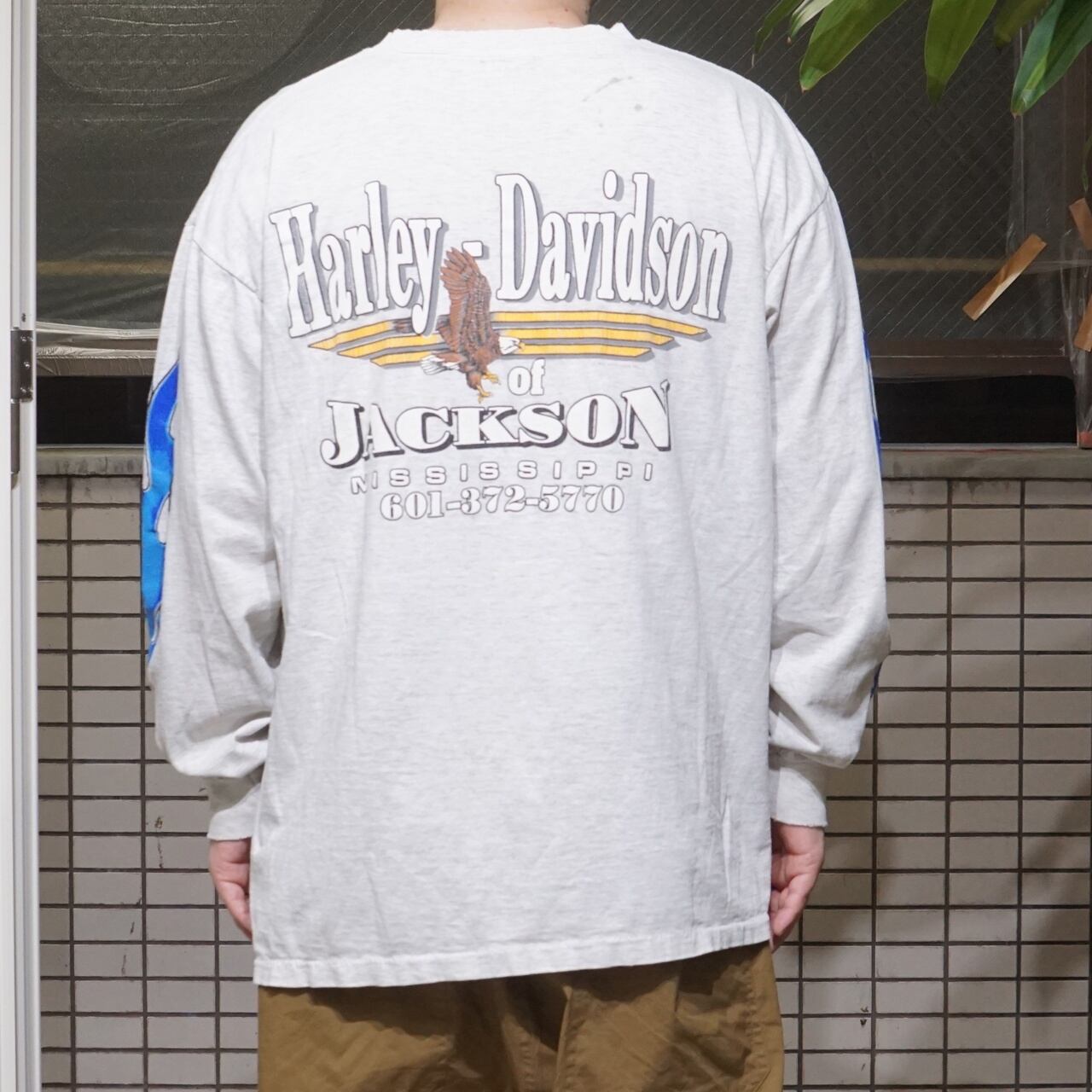90's Vintage Harley Shirts Blue Flame L/S 【XL】