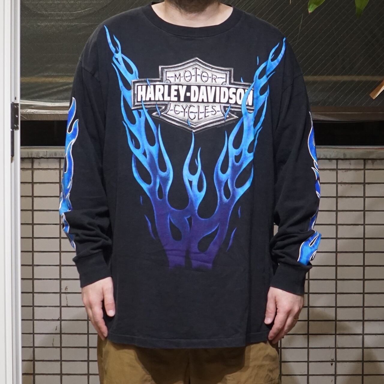 90's Vintage Harley Shirts Blue Flame L/S【XL】