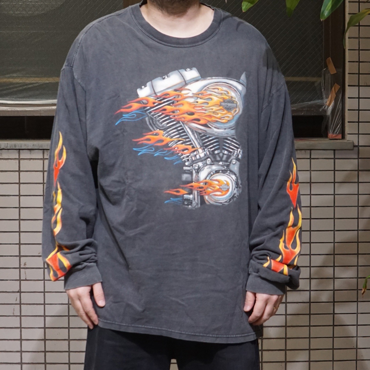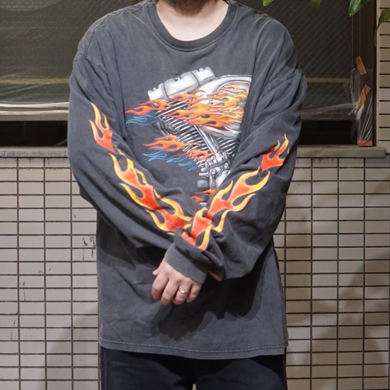 00's Vintage Harley Shirts V Twin Flame L/S【XXL】