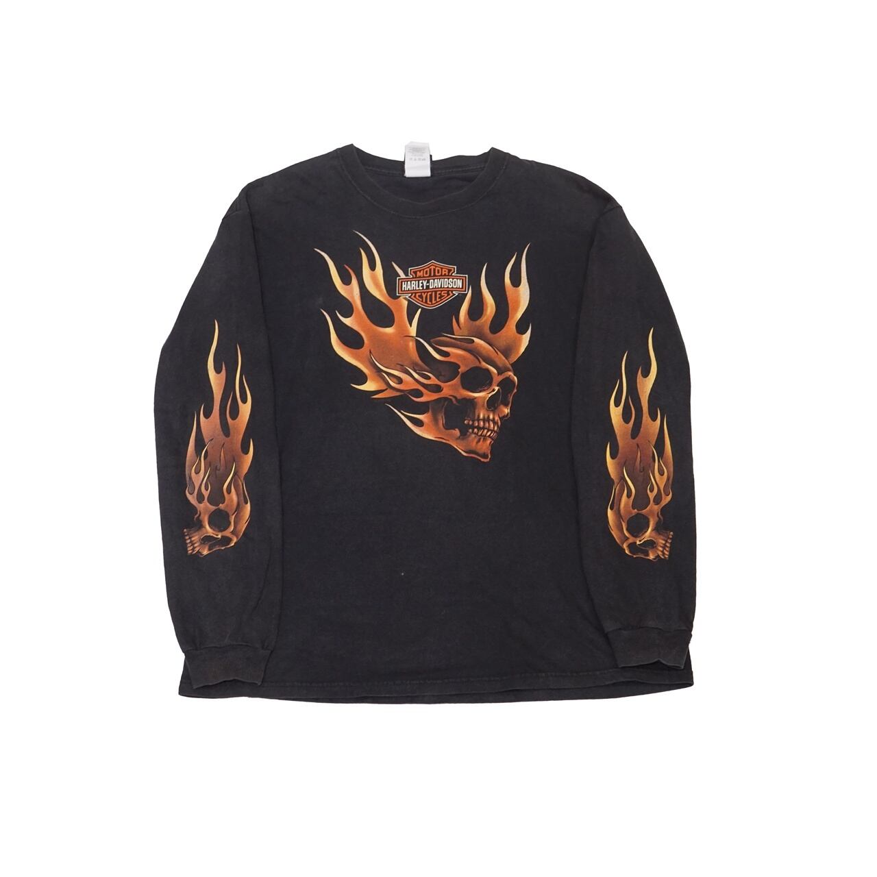 00's Vintage Harley Shirts Skull Flame L/S【XL】