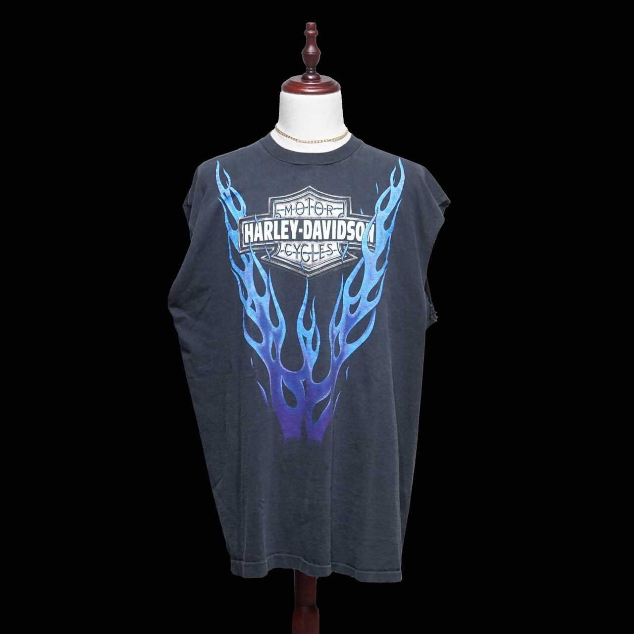 90's Vintage Harley Shirts Blue Flame N/S【XXXL】