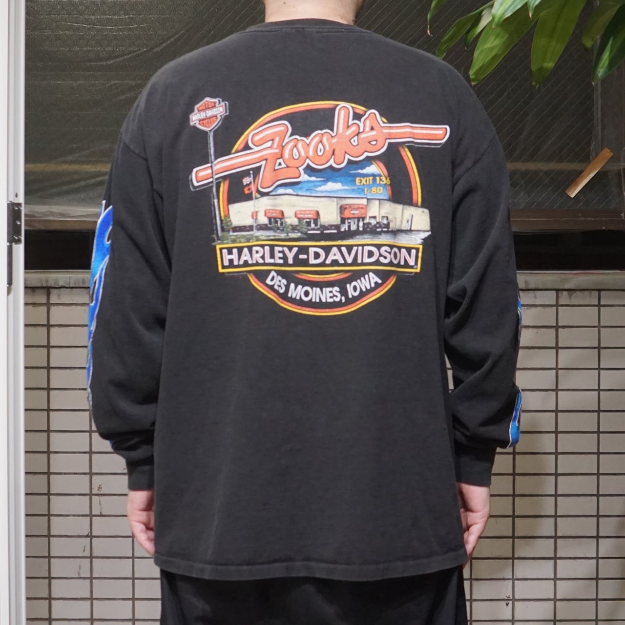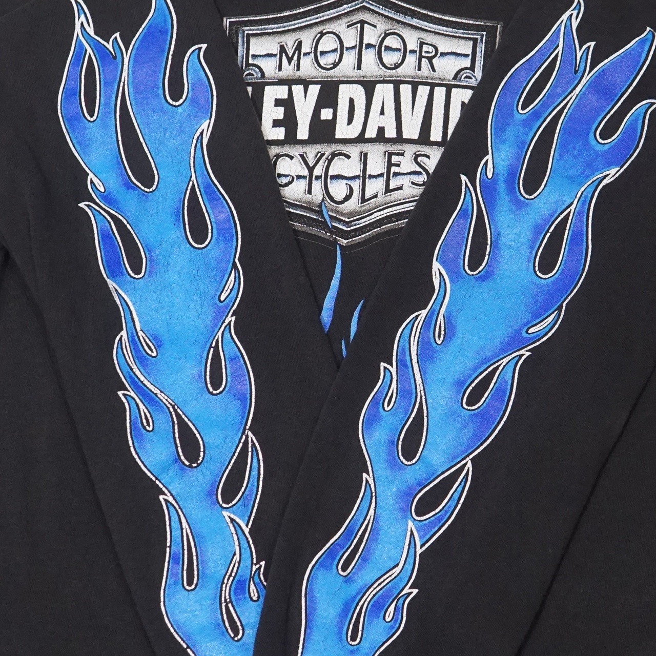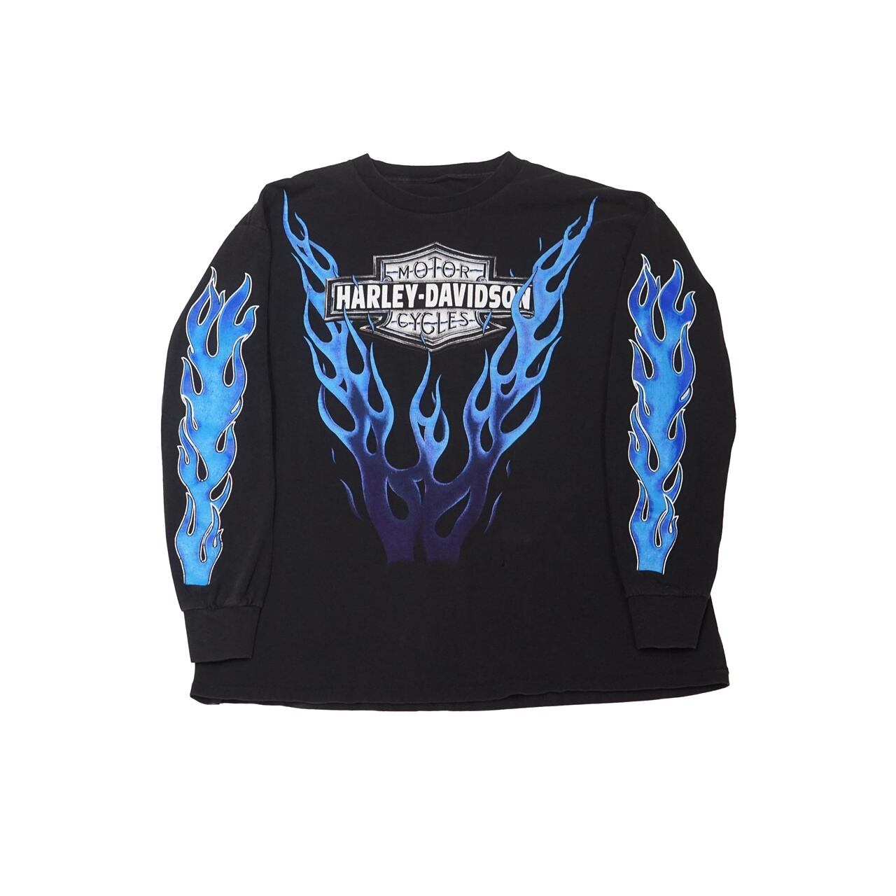 90's Vintage Harely Shirt Blue Flame L/S【XL】