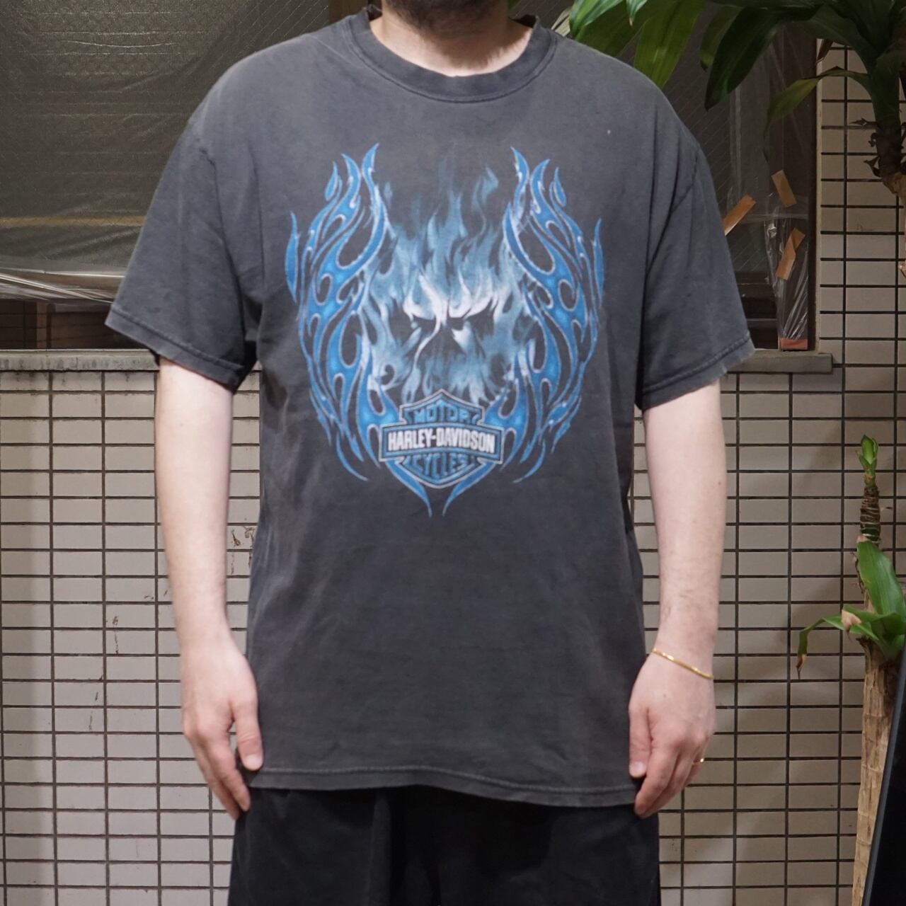 00's Vintage Harely Shirt Blue Flame S/S【L】
