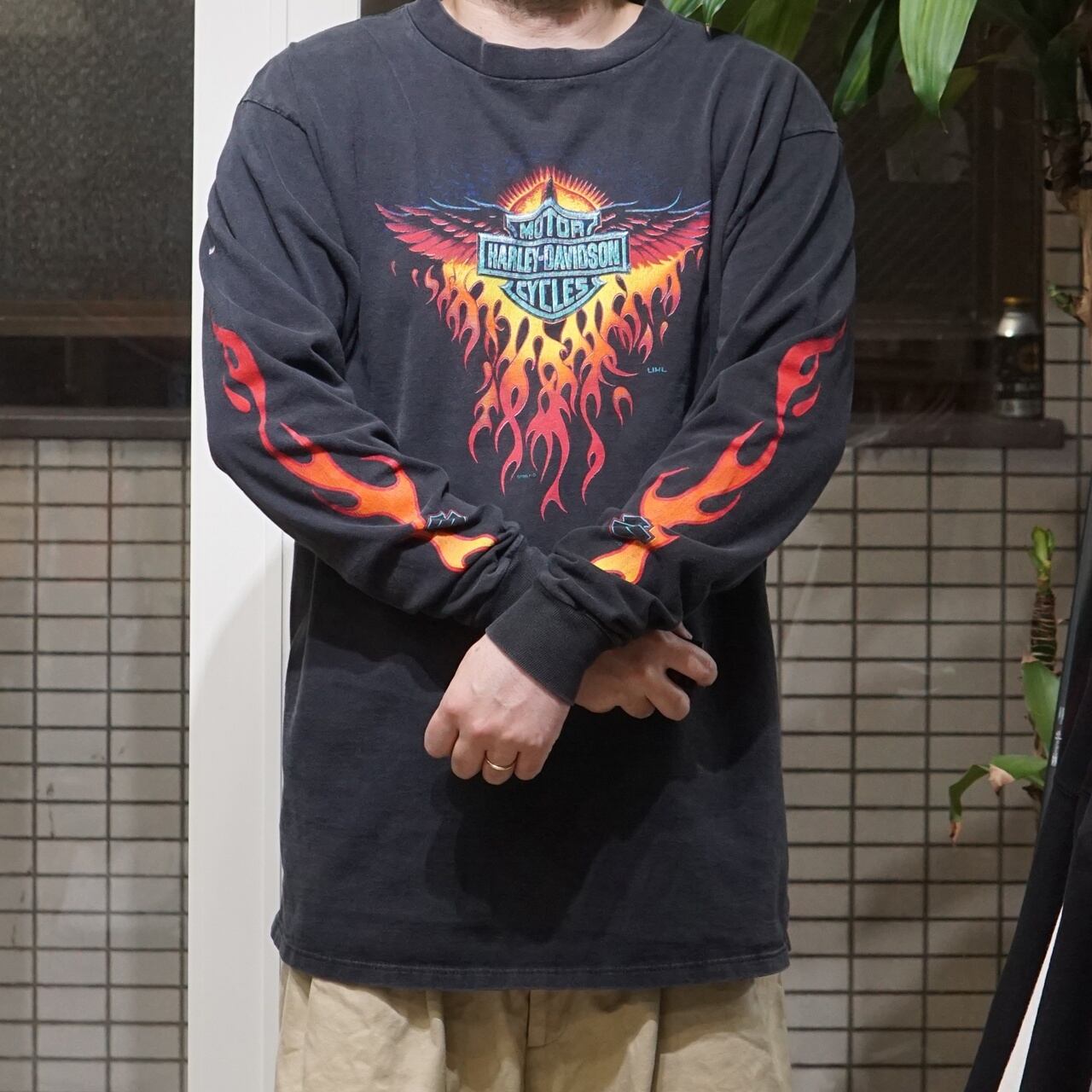 00's Vintage Harely Shirt Eagle Flame L/S【XL】