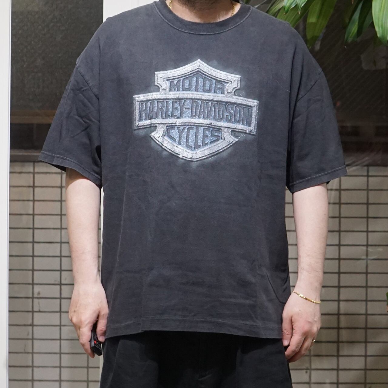 00's Vintage Harely Shirt bar&Shield Chrome S/S【XL】