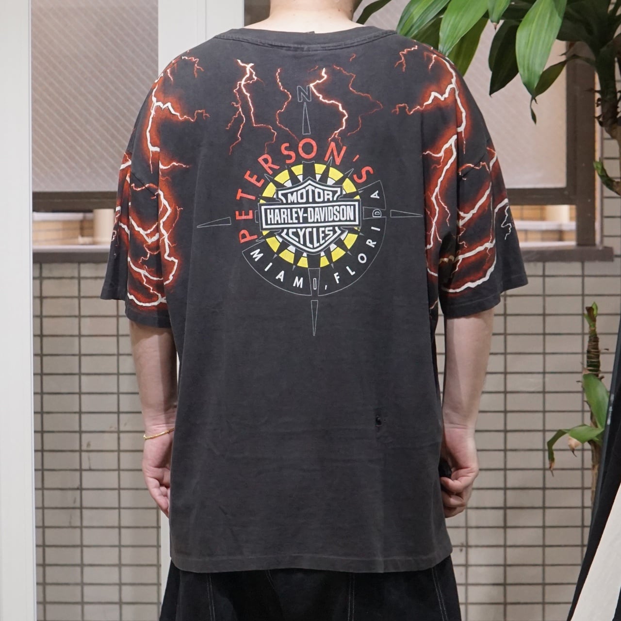 90's Vintage Harely Shirt Thunder Lightning Orange S/S【XXL】