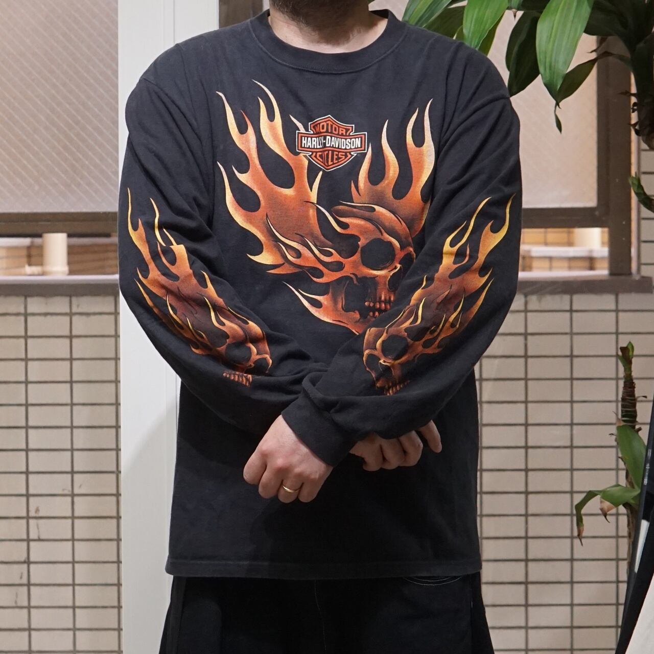 00's Vintage Harely Shirt Skull Flame L/S【L】