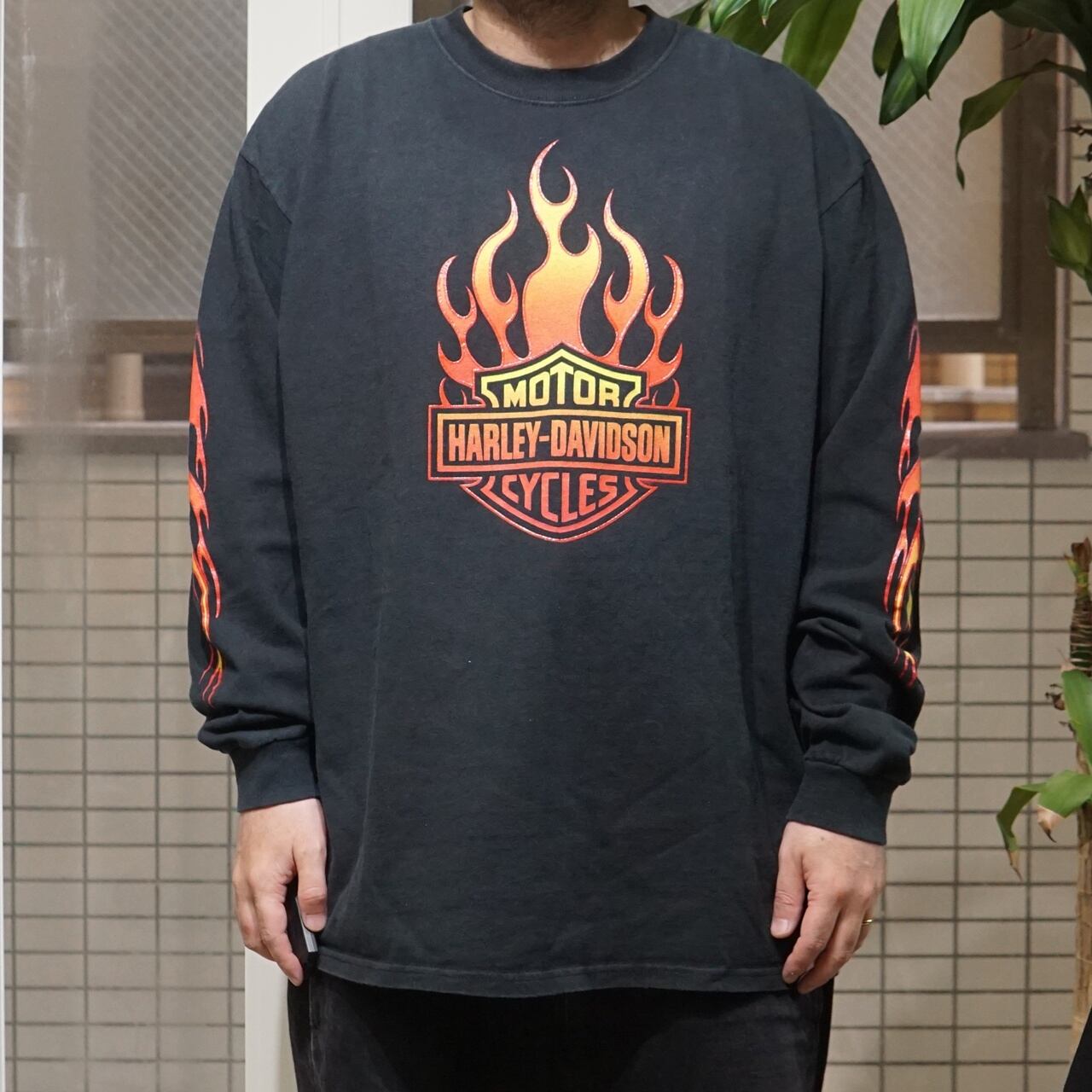 00's Vintage Harley Shirt Fire Flame L/S【XL】