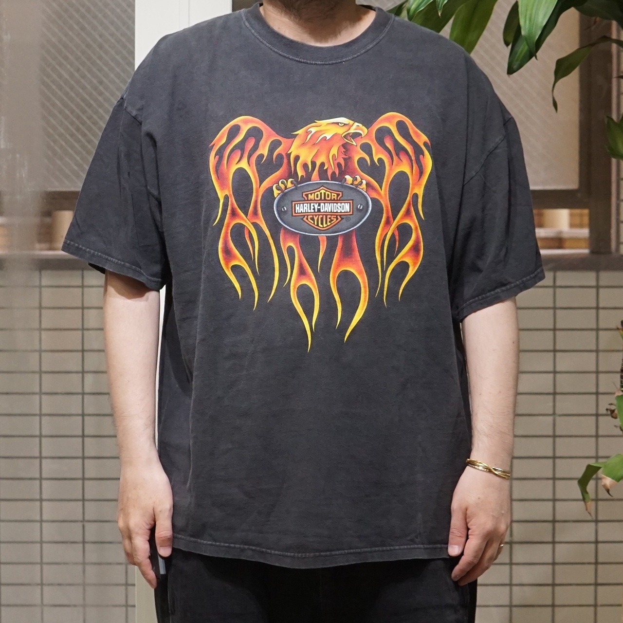 00's Vintage Harley Shirt Flying Eagle Flame S/S【XXL】