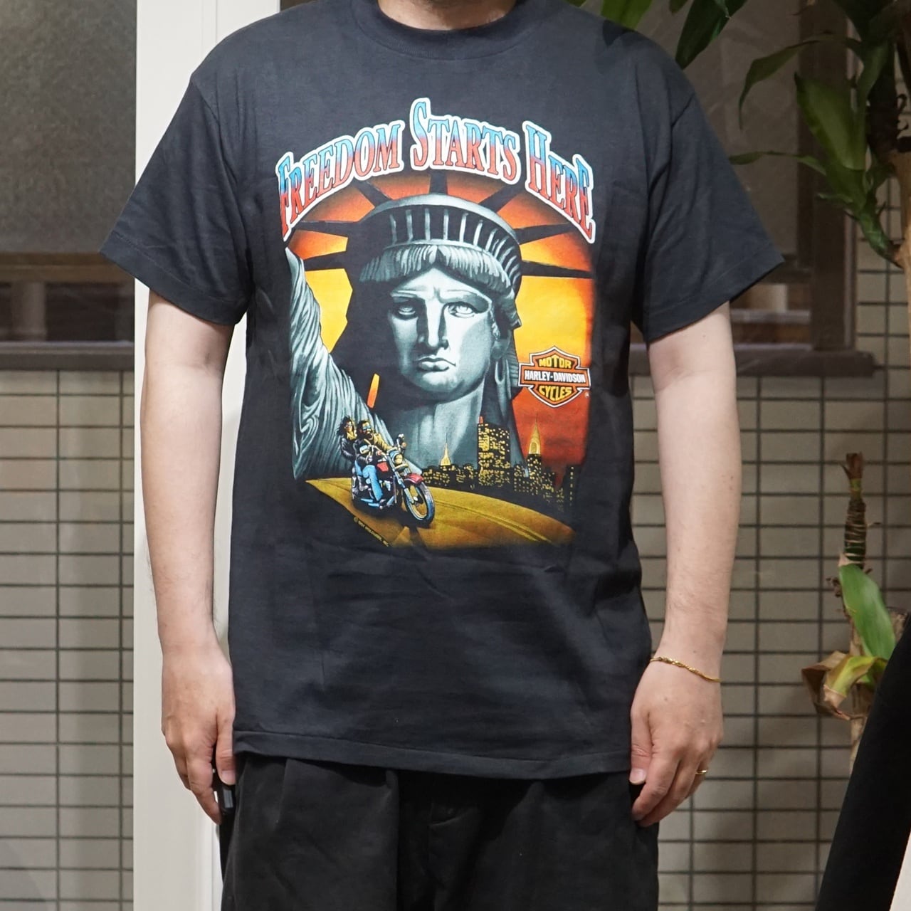90's Vintage Harley Shirt Freedom Stars Here S/S【L】