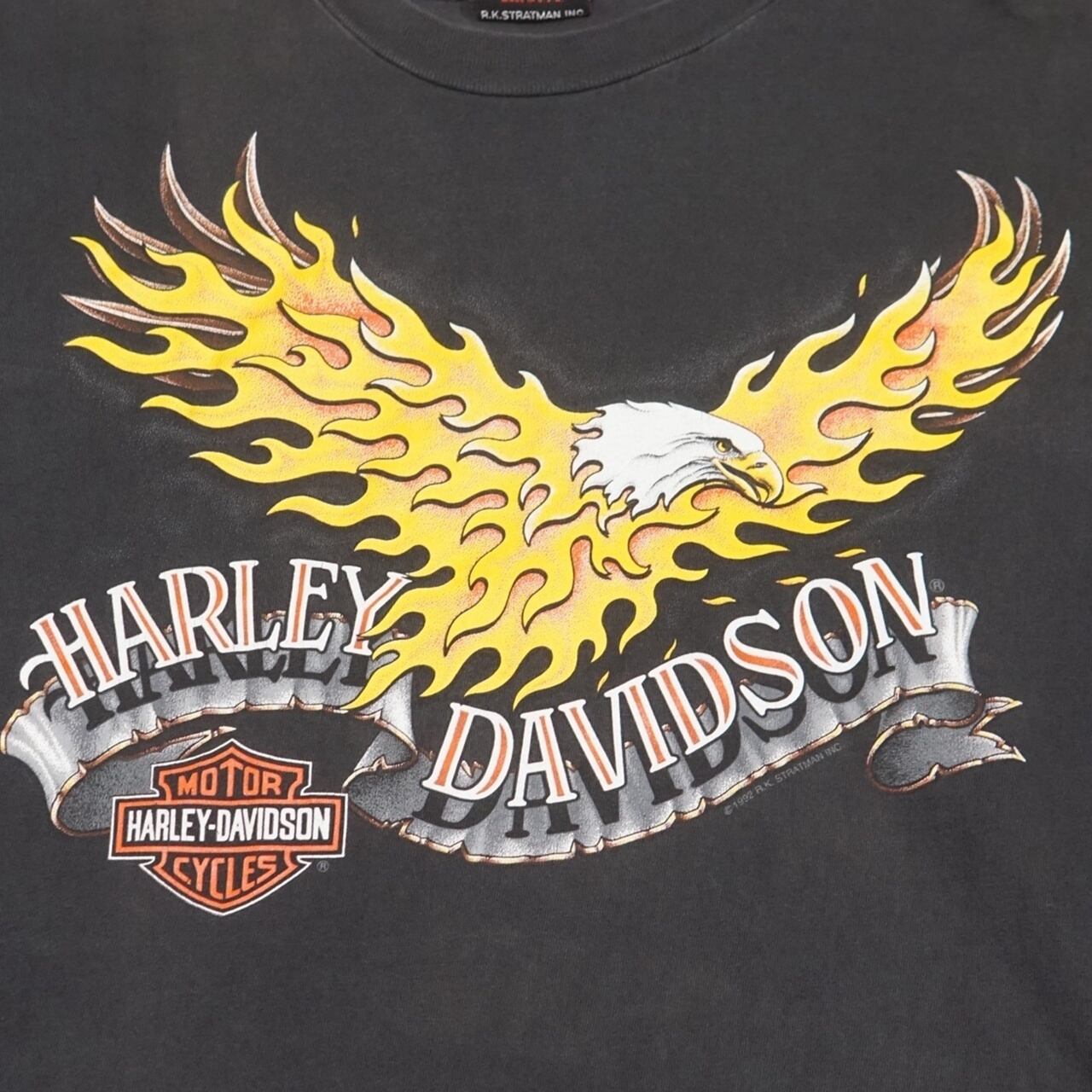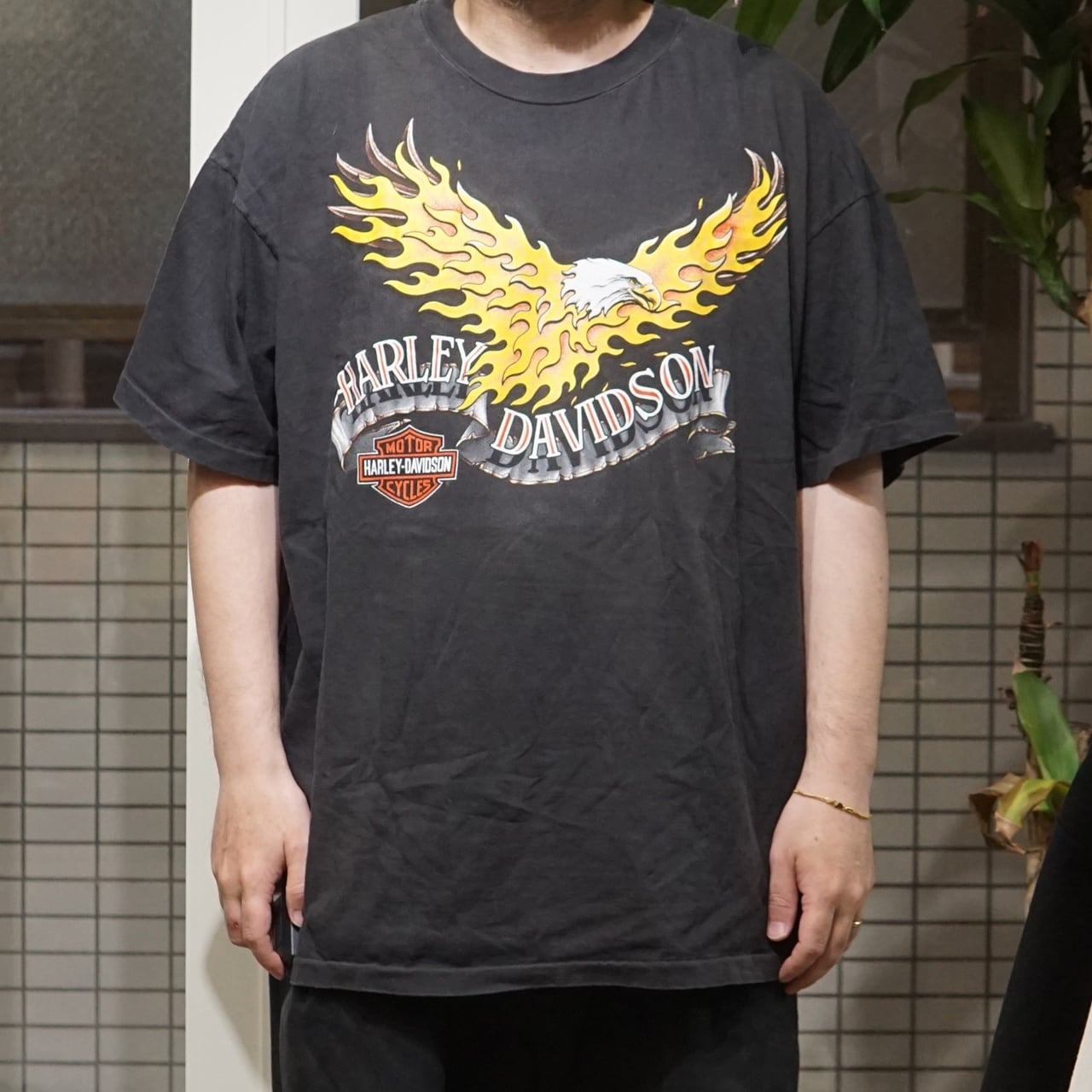 90's Vintage Harley Shirt Flying Eagle Flame S/S【XXL】
