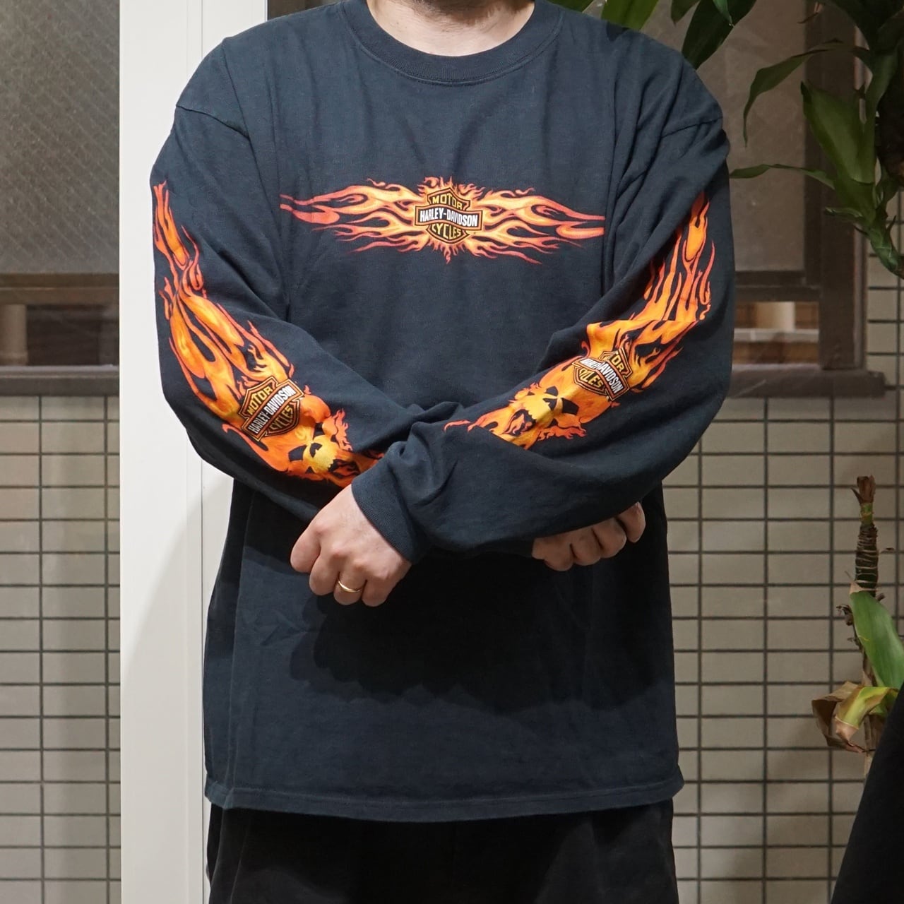 00's Vintage Harley Shirt Fire Flame L/S【XL】