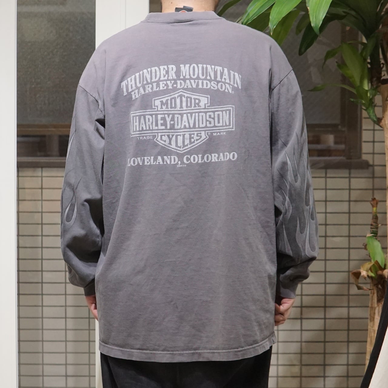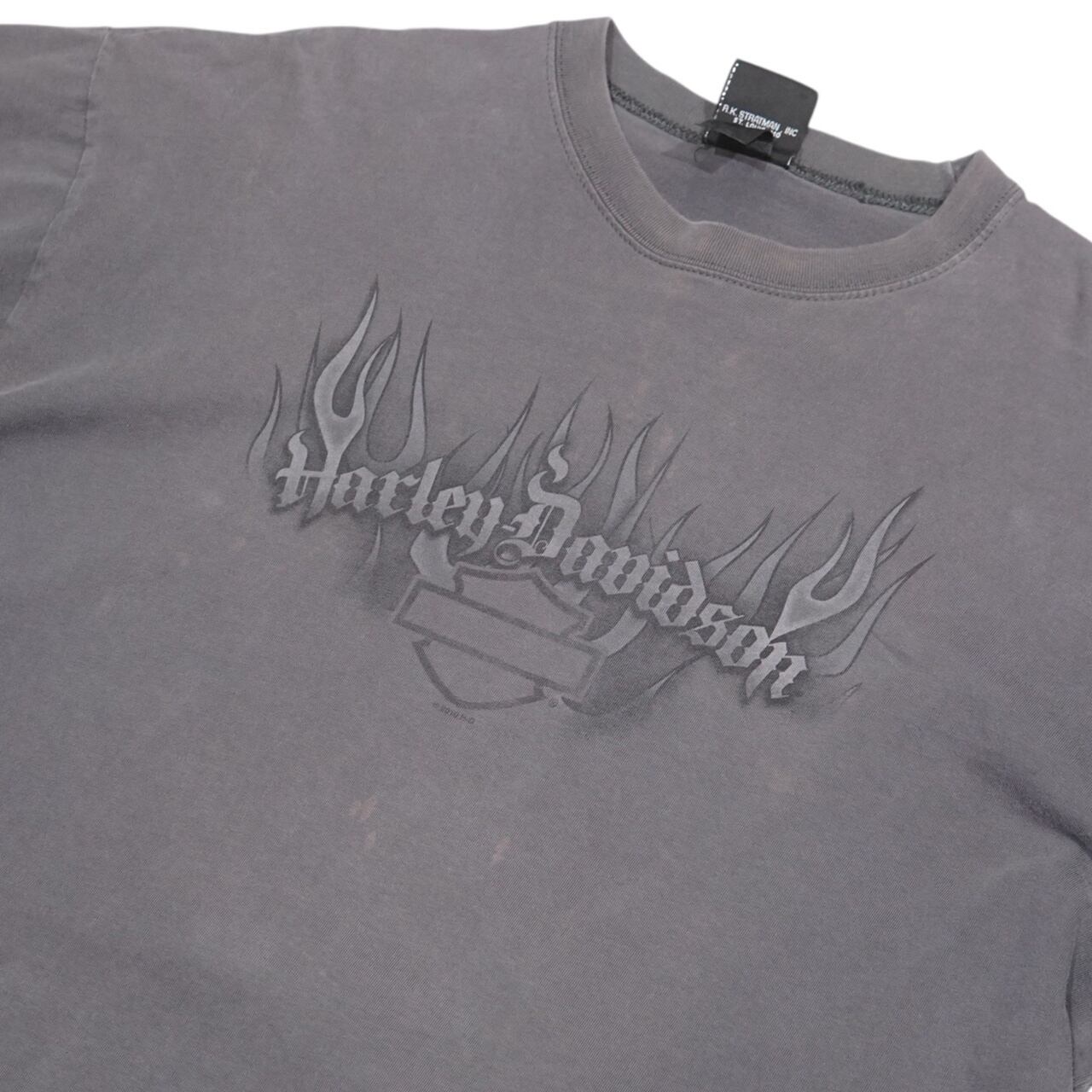 00's Vintage Harley Shirt Chacoal Flame L/S【XXL】