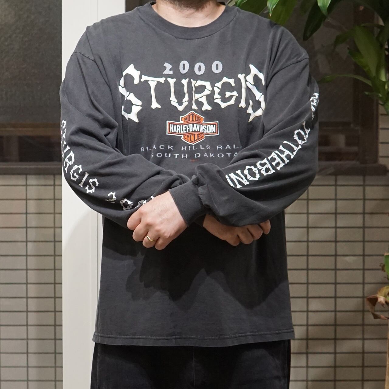 00's Vintage Harley Shirt Sturgis Bone L/S【XL】