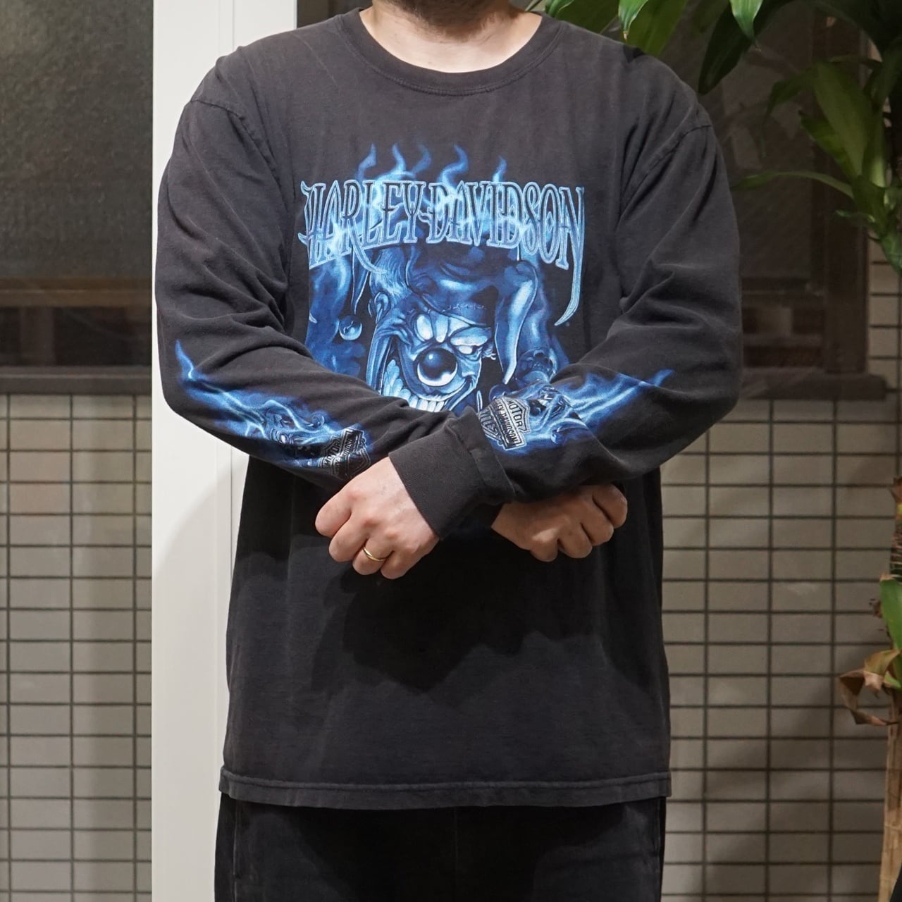 00's Vintage Harley Shirt Clown Blue Flame L/S【L】