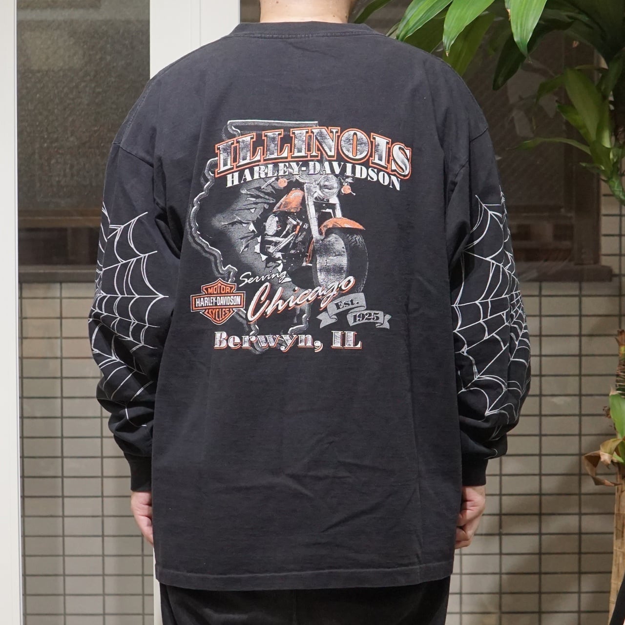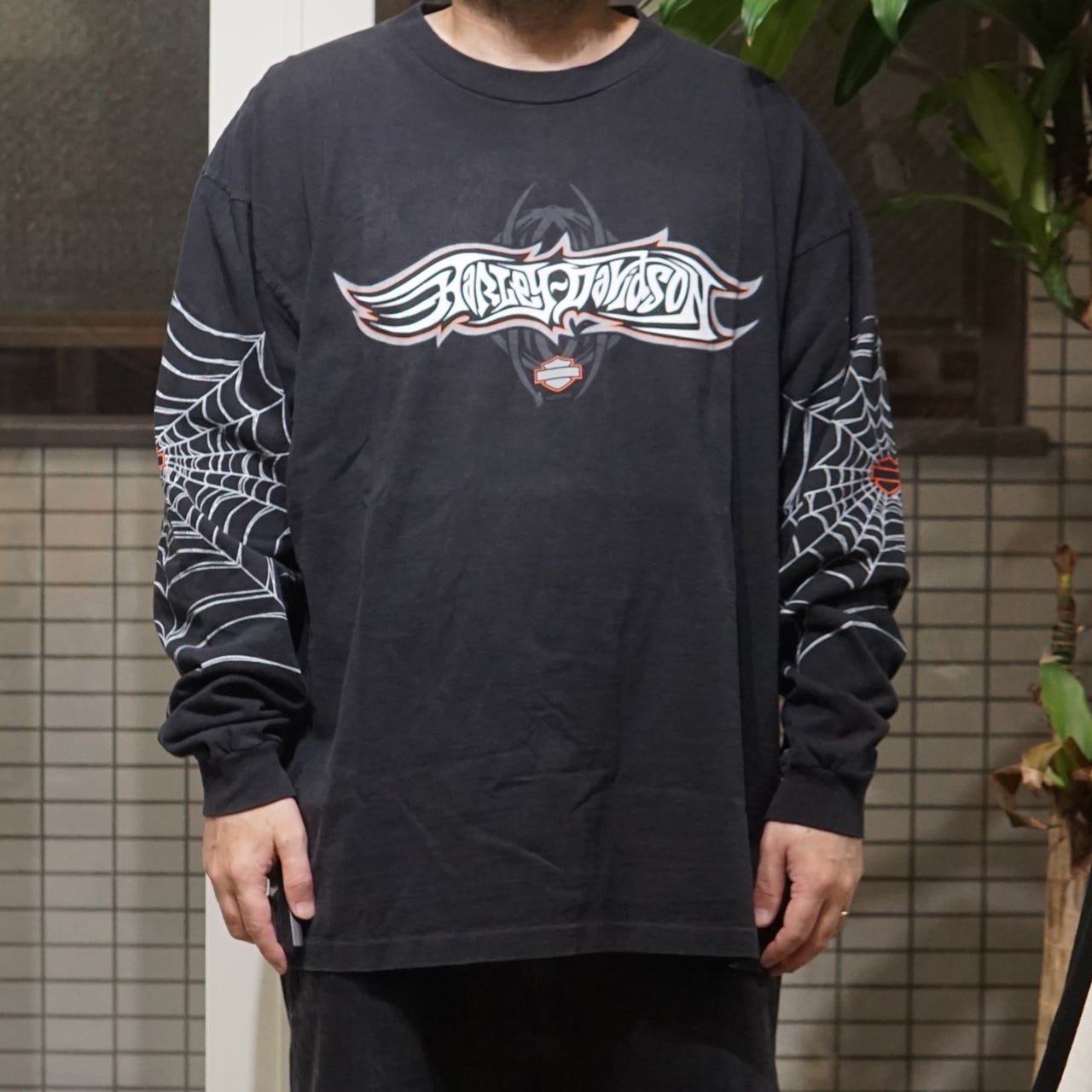 00's Vintage Harley Shirt Spider Web L/S【XXL】