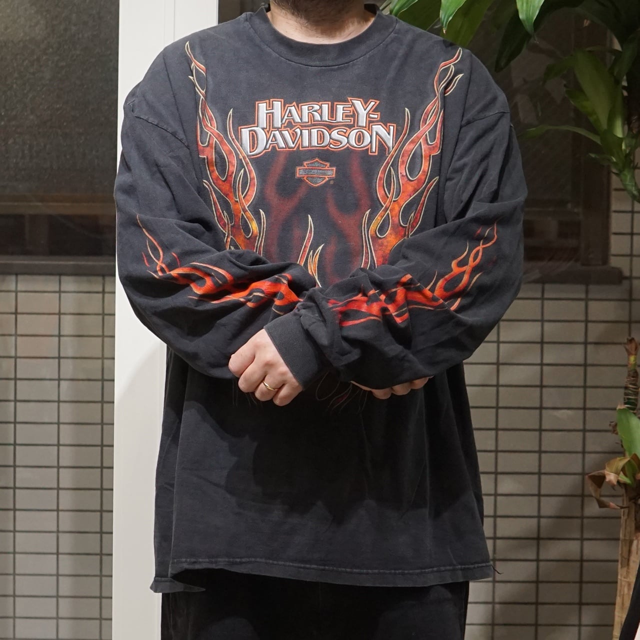 90's Vintage Harley Shirt Rising Flame L/S【XXL】