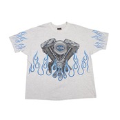 90's Vintage Harley Shirt Engine Blue Flame S/S【XXL】