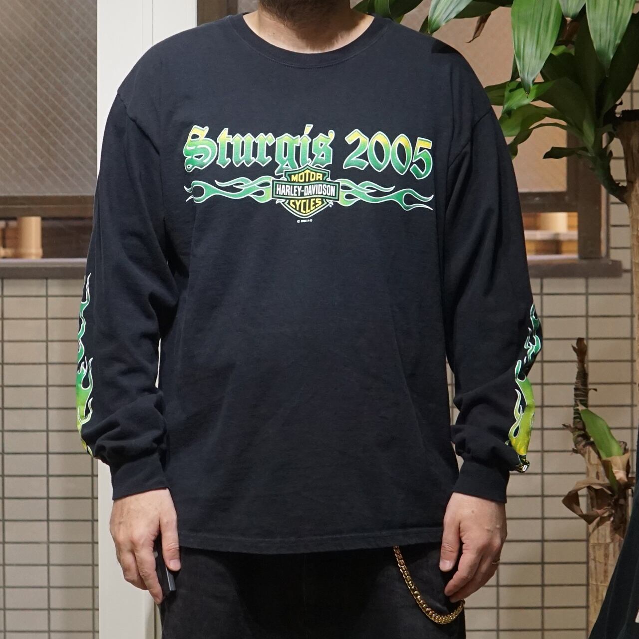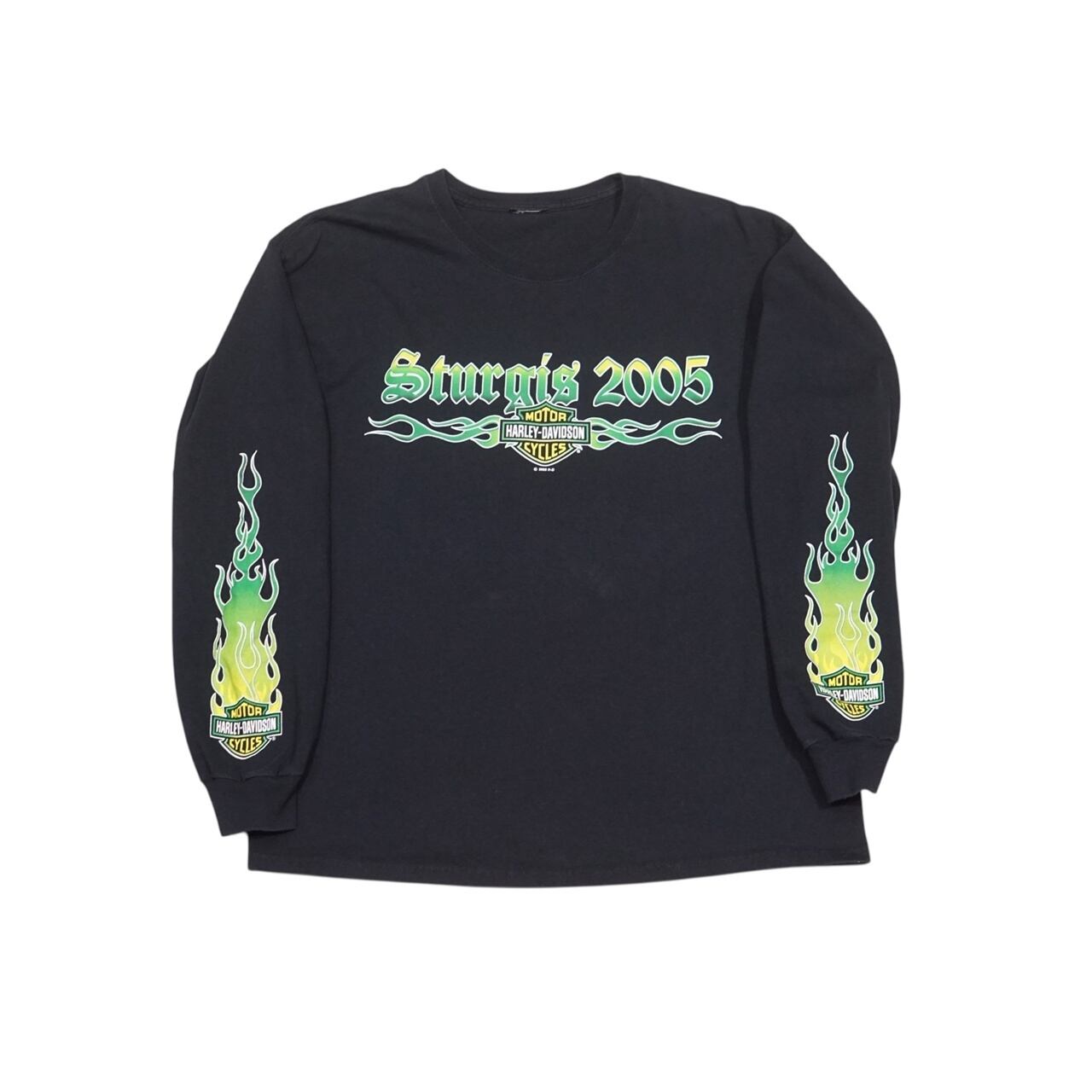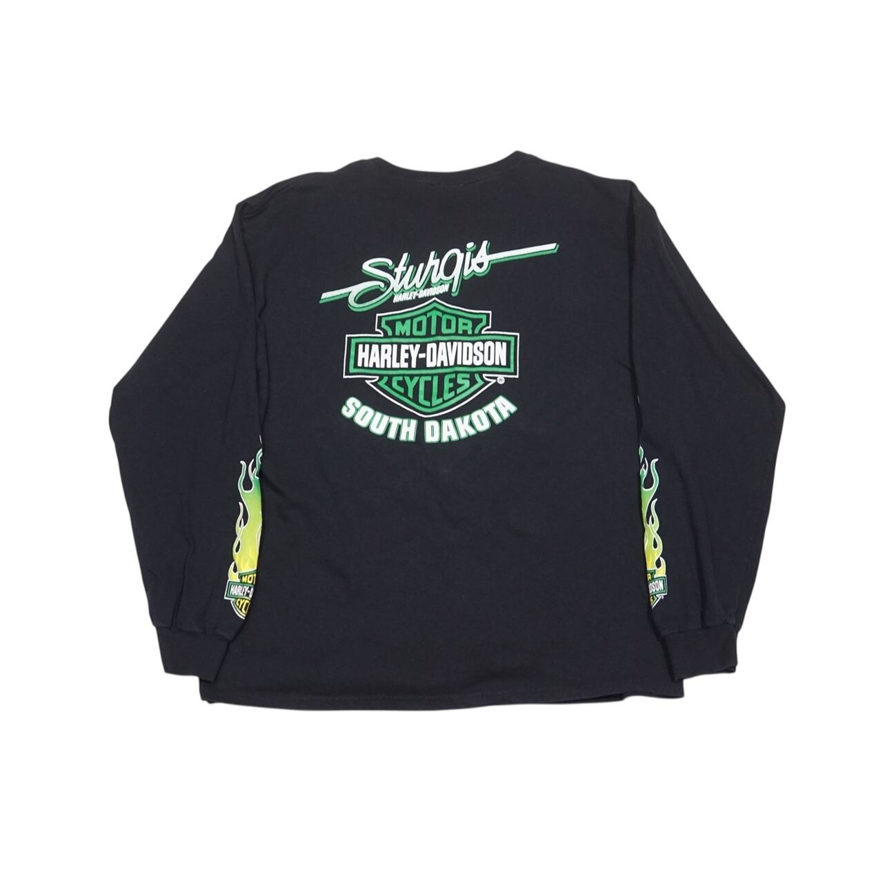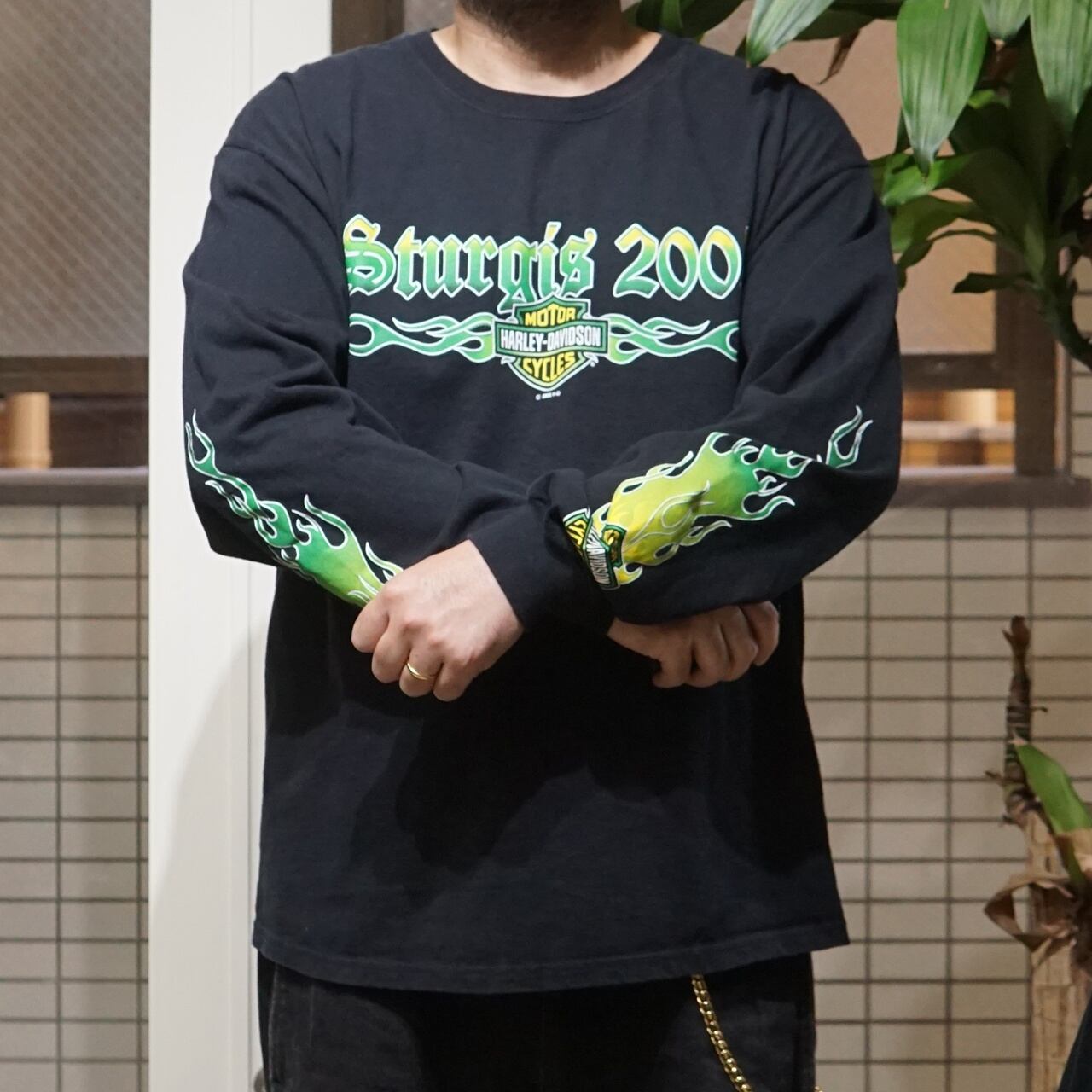 00's Vintage Harley Shirt Sturgis Green Flame L/S【L】