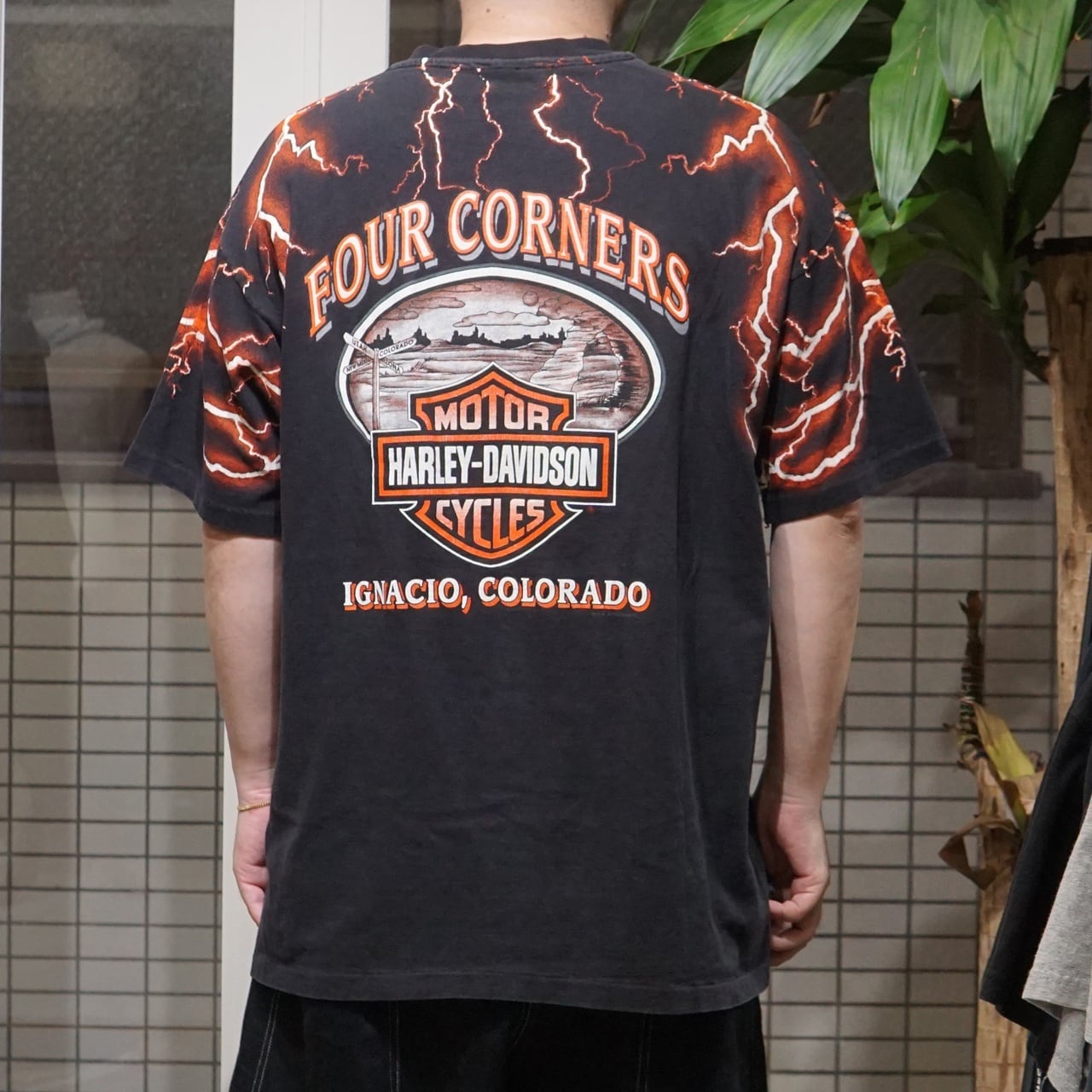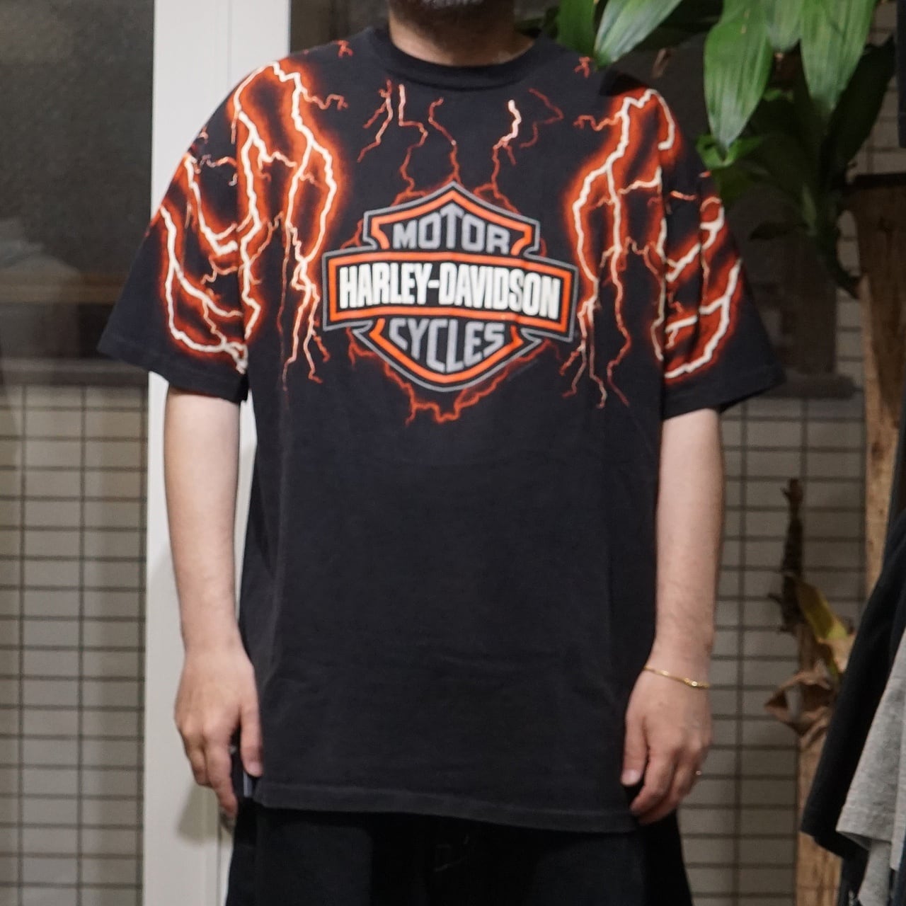 90's Vintage Harley Shirt Thunder Lightning Orange S/S【XL】