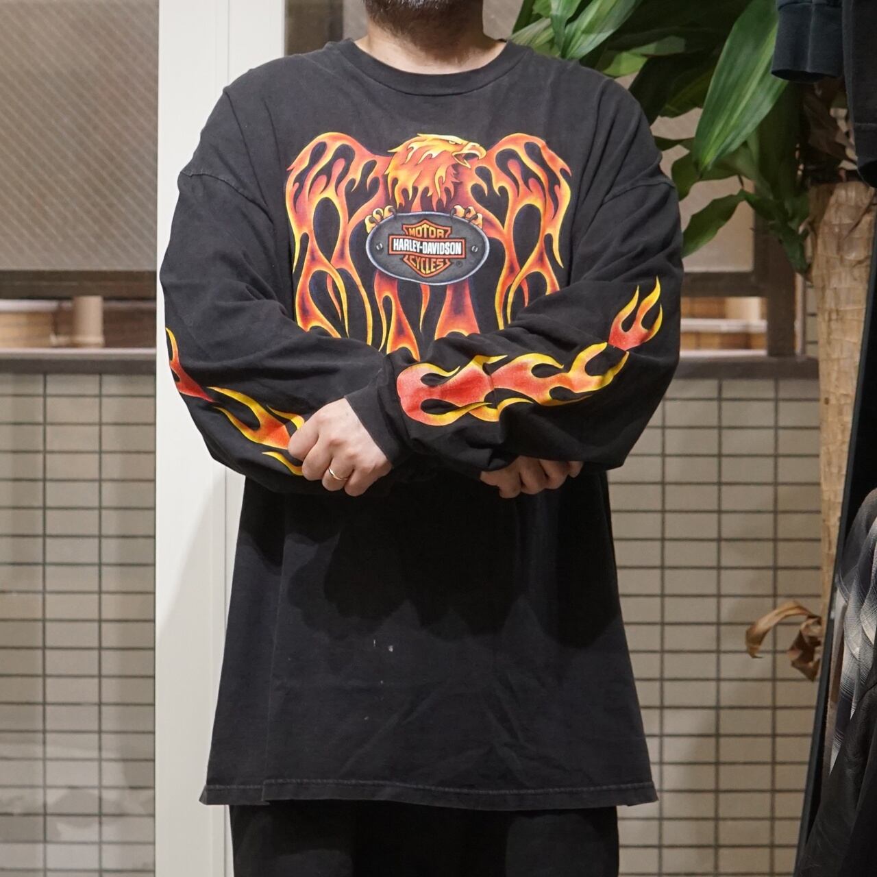 00's Vintage Harley Shirt Eagle Flame L/S【XXL】