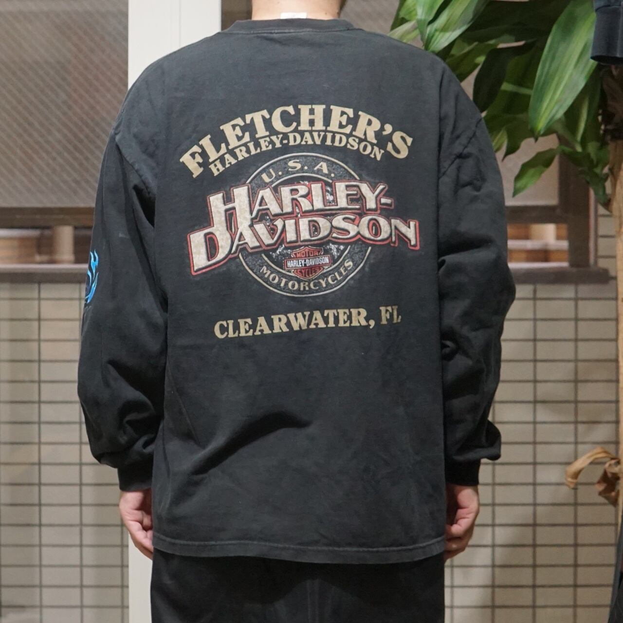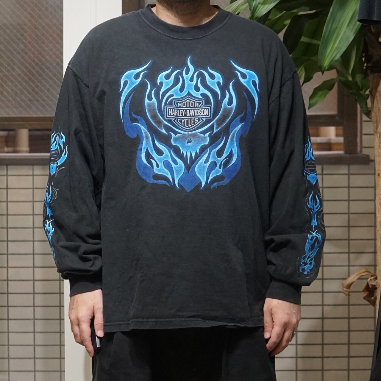 00's Vintage Harley Shirt Blue Flame L/S【XL】