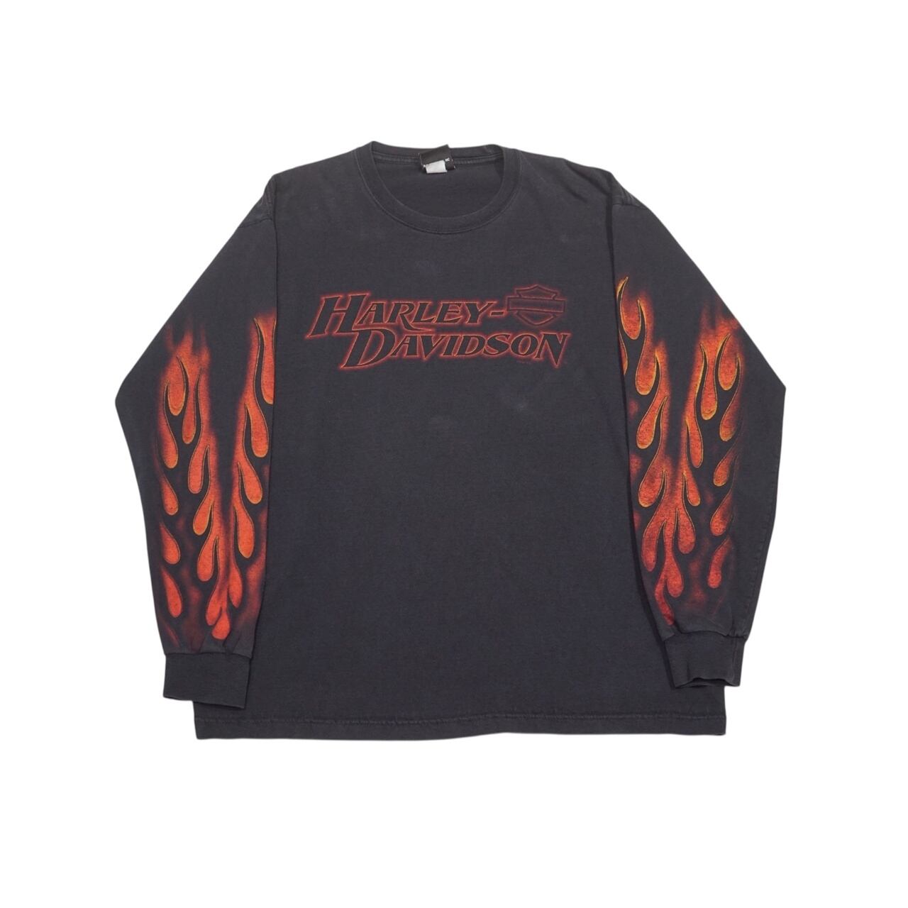 00's Vintage Harley Shirt Grand Teton Flame L/S【XL】