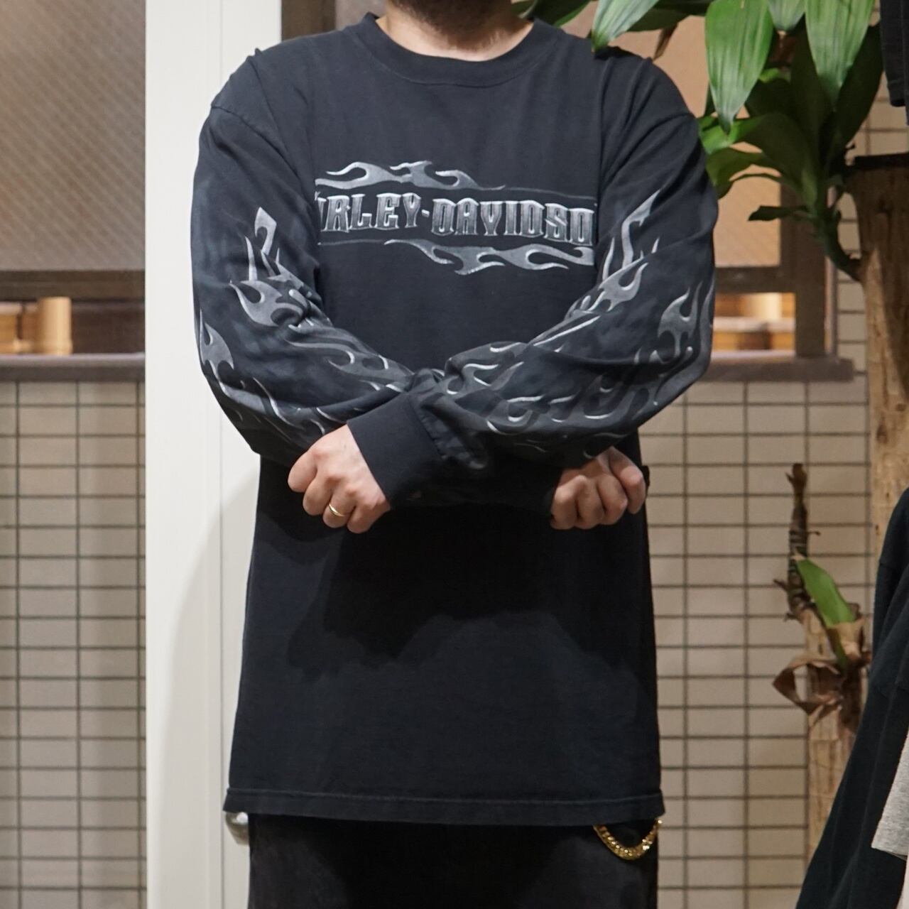 00's Vintage Harley Shirt Freedom Flame L/S【L】