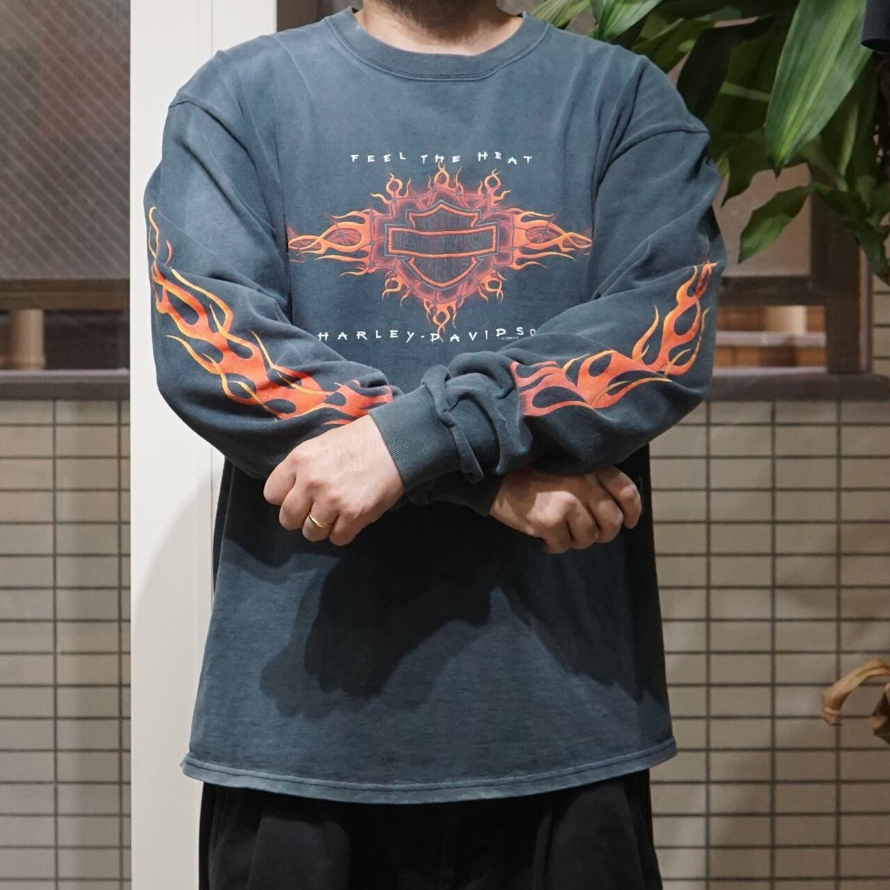 90's Vintage Harely Shirt Feel The Heat Flame L/S【L】