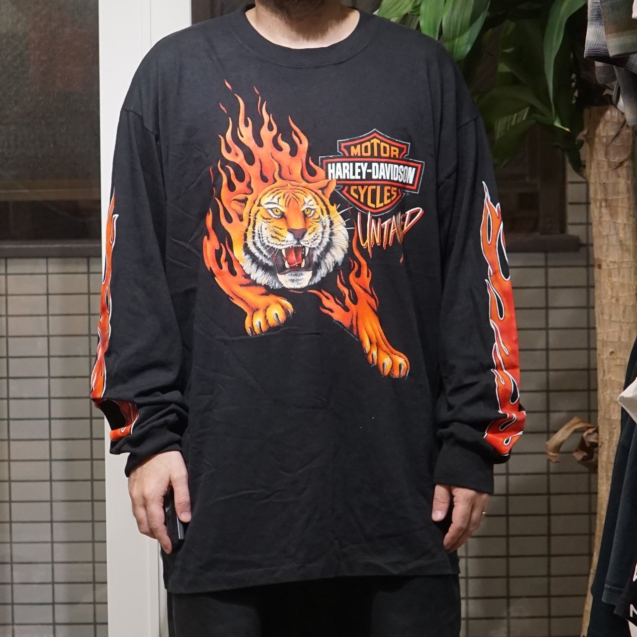 90's Vintage Harley Shirt Tiger Flame L/S【XXXL】