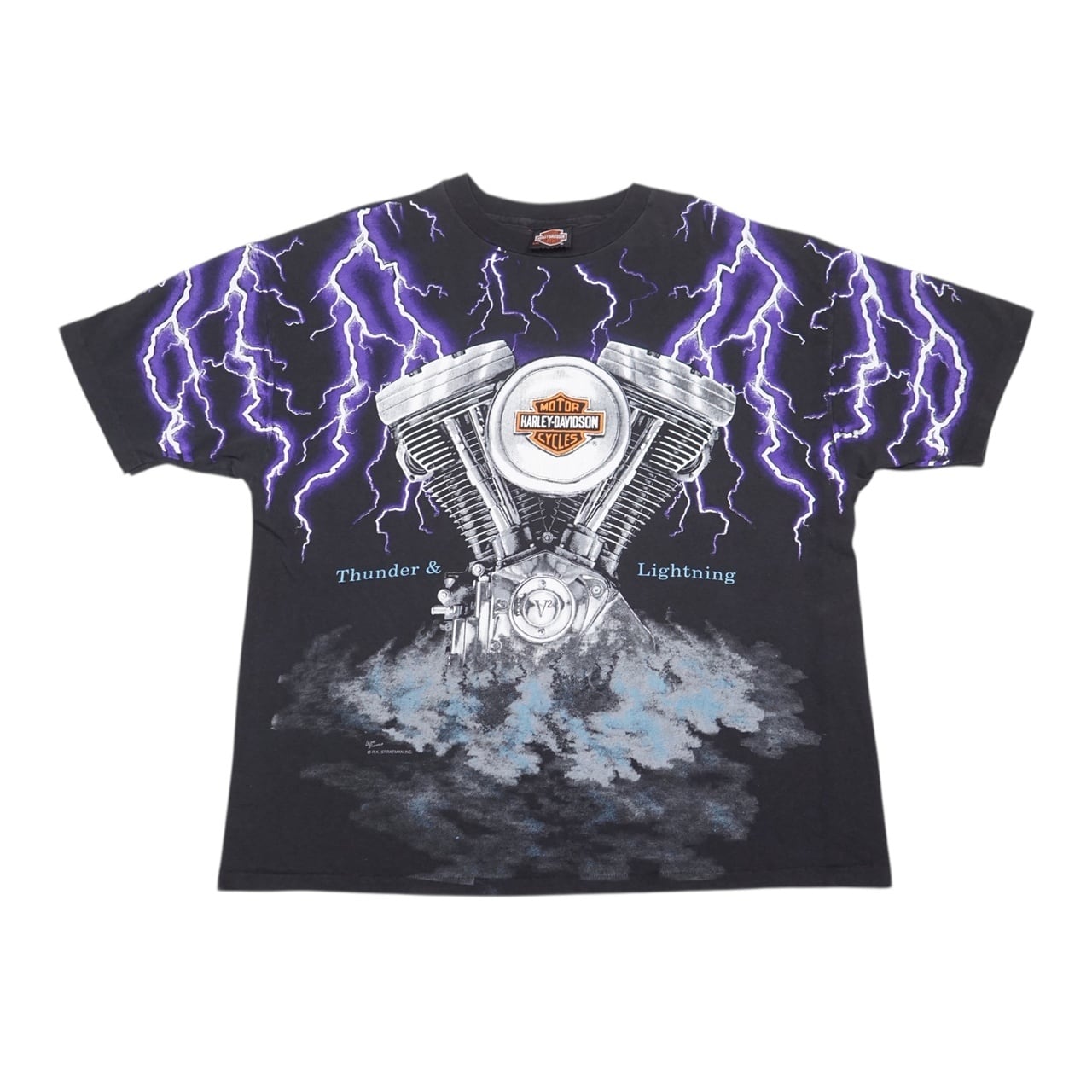 90's Vintage Harley Shirt Thunder Lightning S/S【XXL】