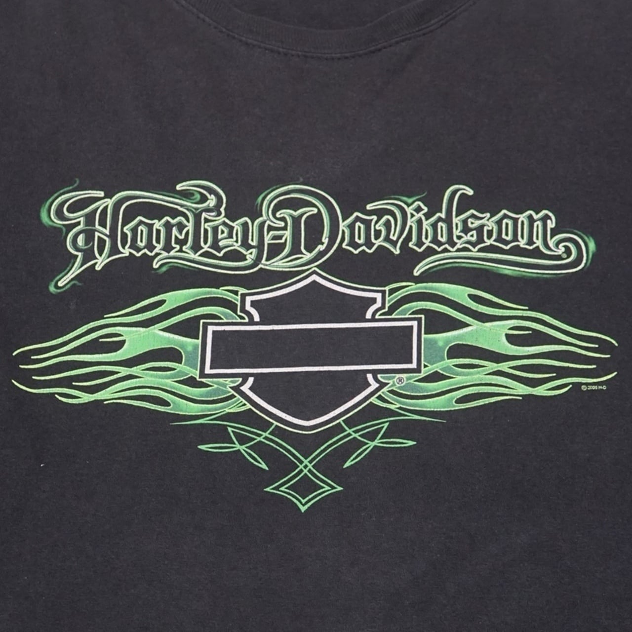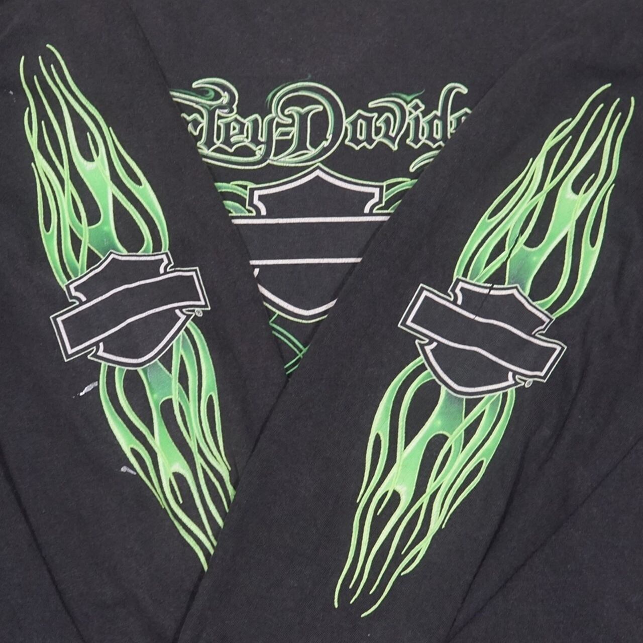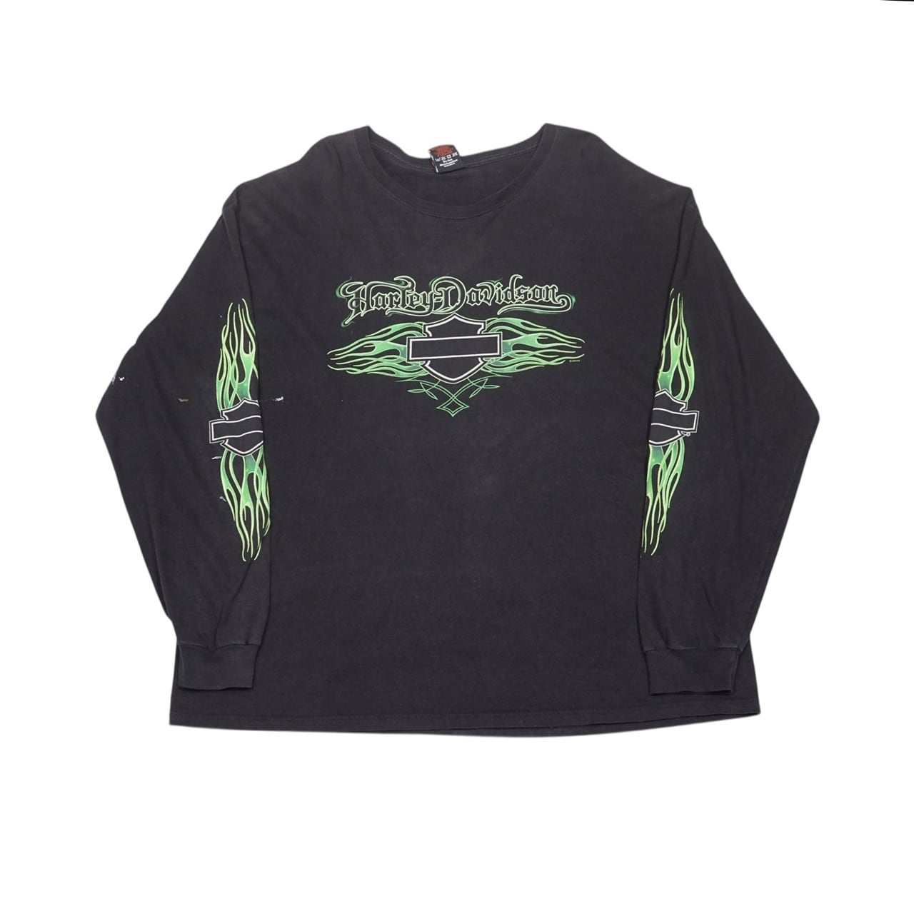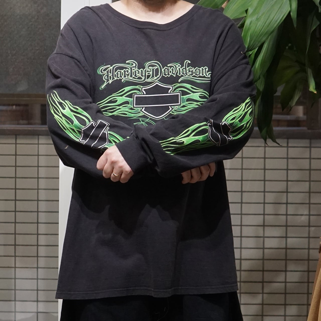 00's Vintage Harley Shirt Green Flame L/S【XXL】