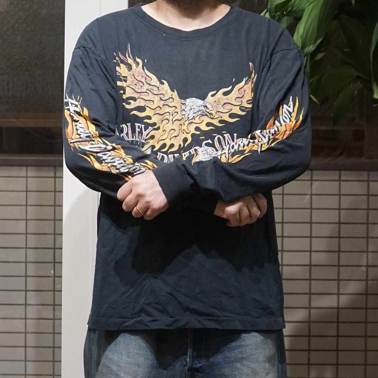 90's Vintage Harley Shirt Flying Eagle Flame L/S【XL】