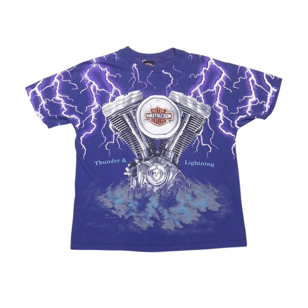 90's Vintage Harley Shirt Thunder Lightning S/S【L】