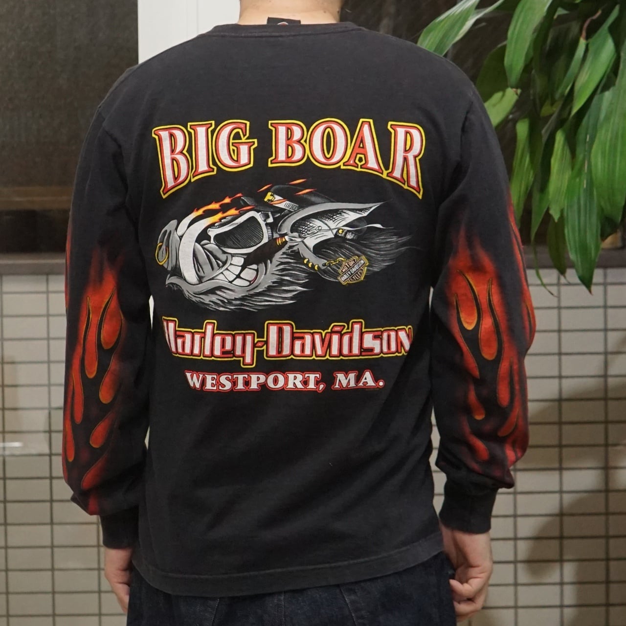 00's Vintage Harley Shirt Big Boar Flame L/S【L】