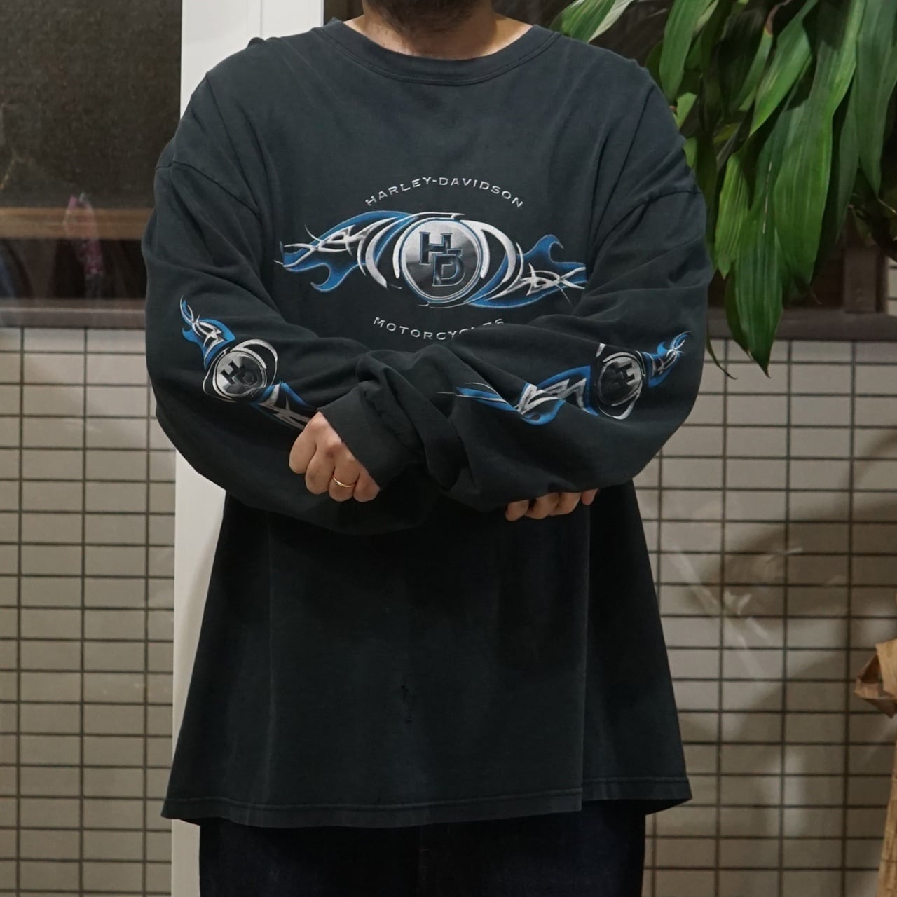00's Vintage Harley Shirt Spitzies Blue Flame Flame L/S【XXL】