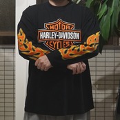 90's Vintage Harley Shirt Bar&Shield Flame L/S【XL】