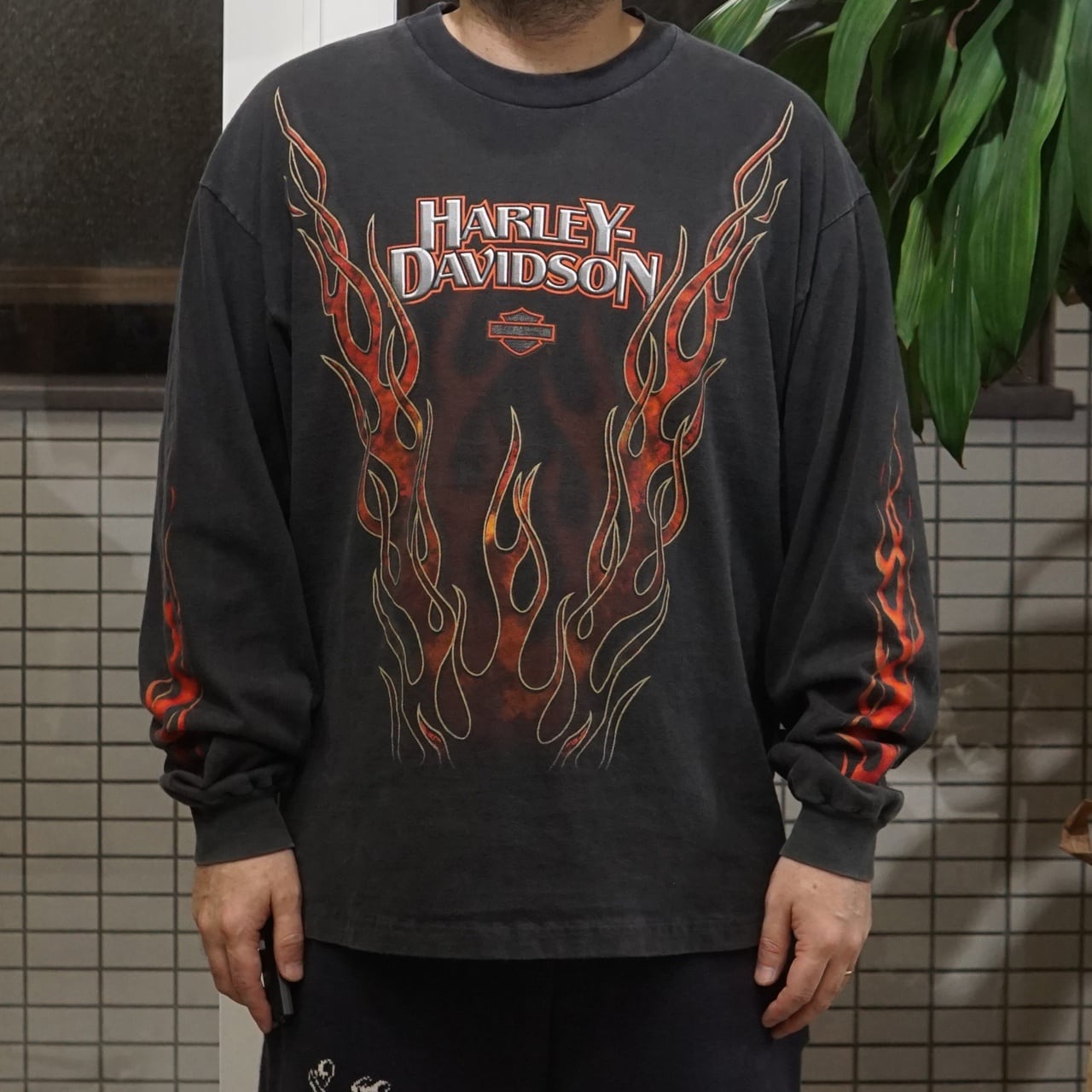 90's Vintage Harley Shirt Rising Flame L/S【XL】