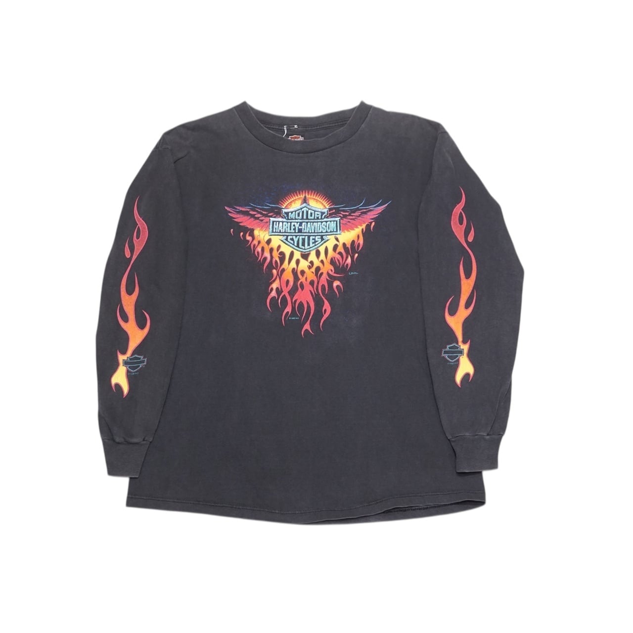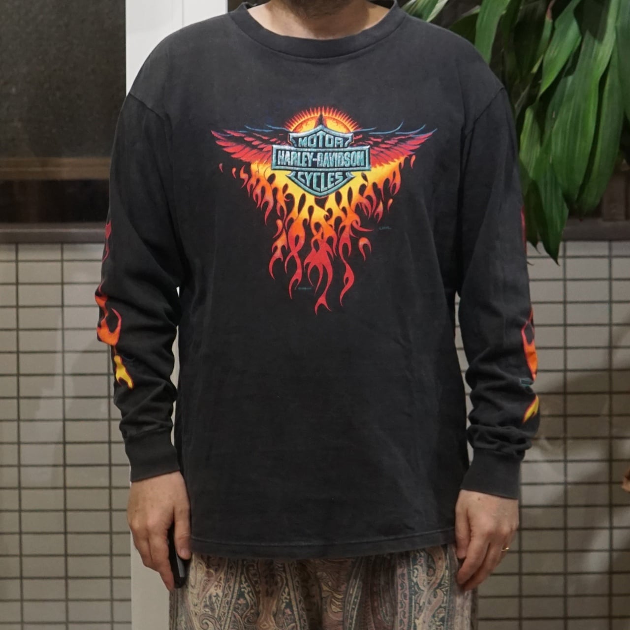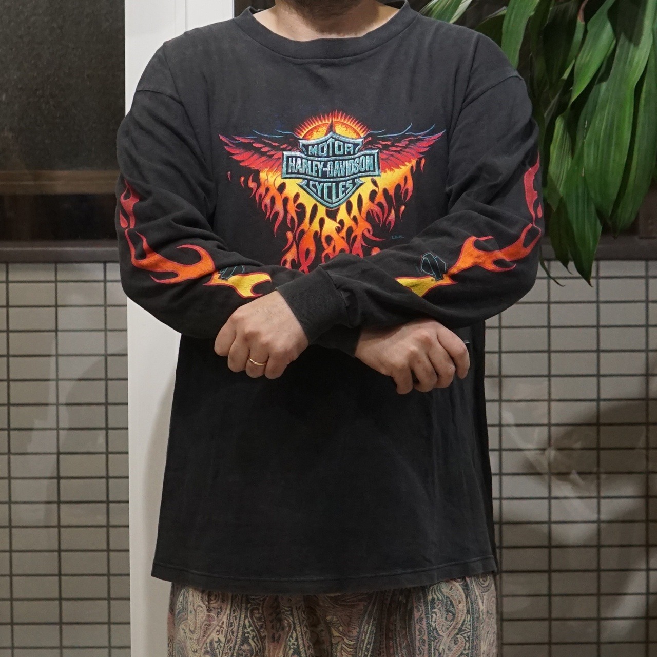 90's Vintage Harley Shirt Eagle Flame L/S【L】