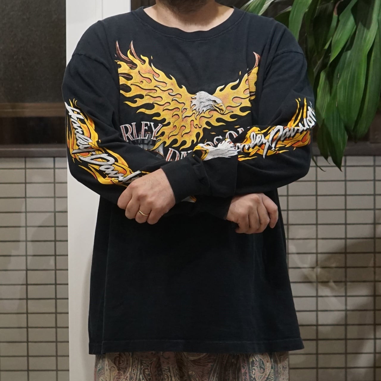 90's Vintage Harley Shirt Flying Eagle Flame L/S【XL】