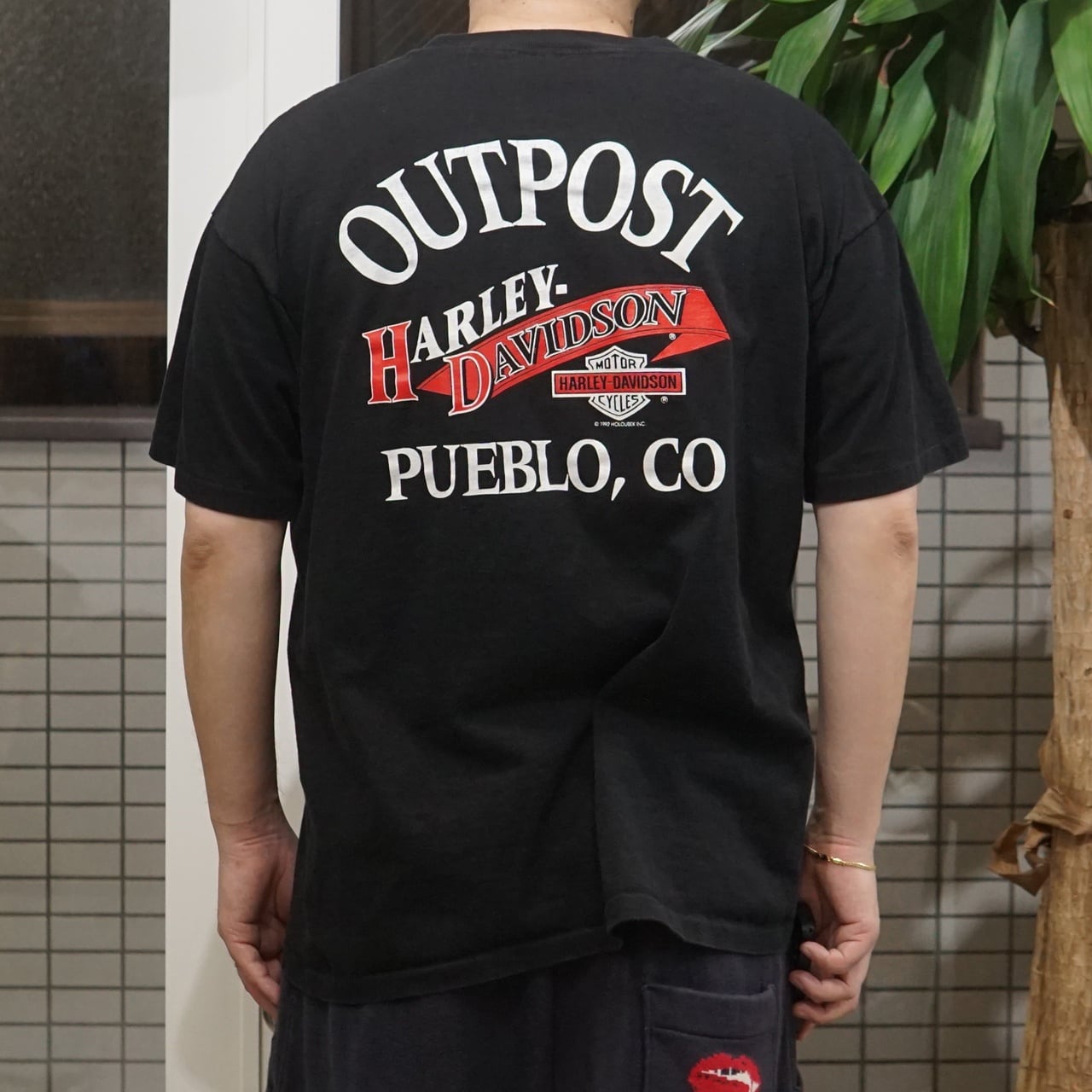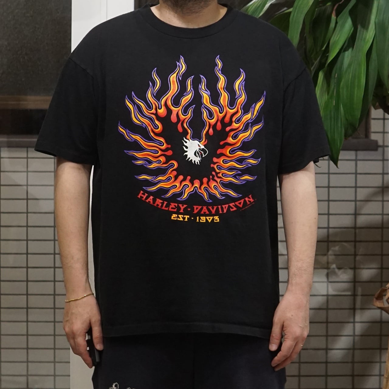 90's Vintage Harley Shirt Flying eagle Flame S/S【L】